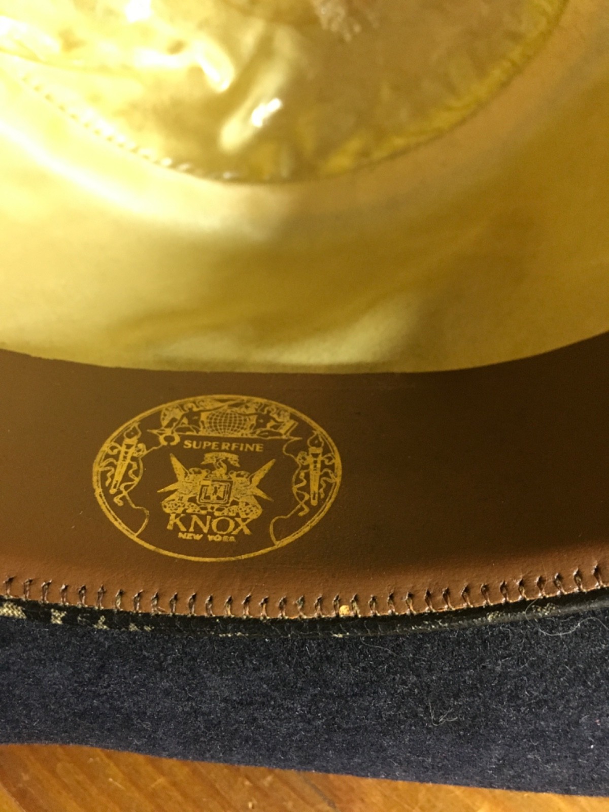как выглядит Vintage Knox black Bowler, Homburg hat, burgundy-brn edging, size 7 1/8, 8799 фото