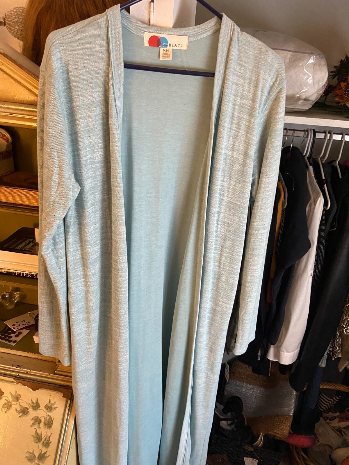 как выглядит NEW Free People BEACH Cardigan Blue Bicoastal Long Sleeve MAXI DUSTER Open Front фото