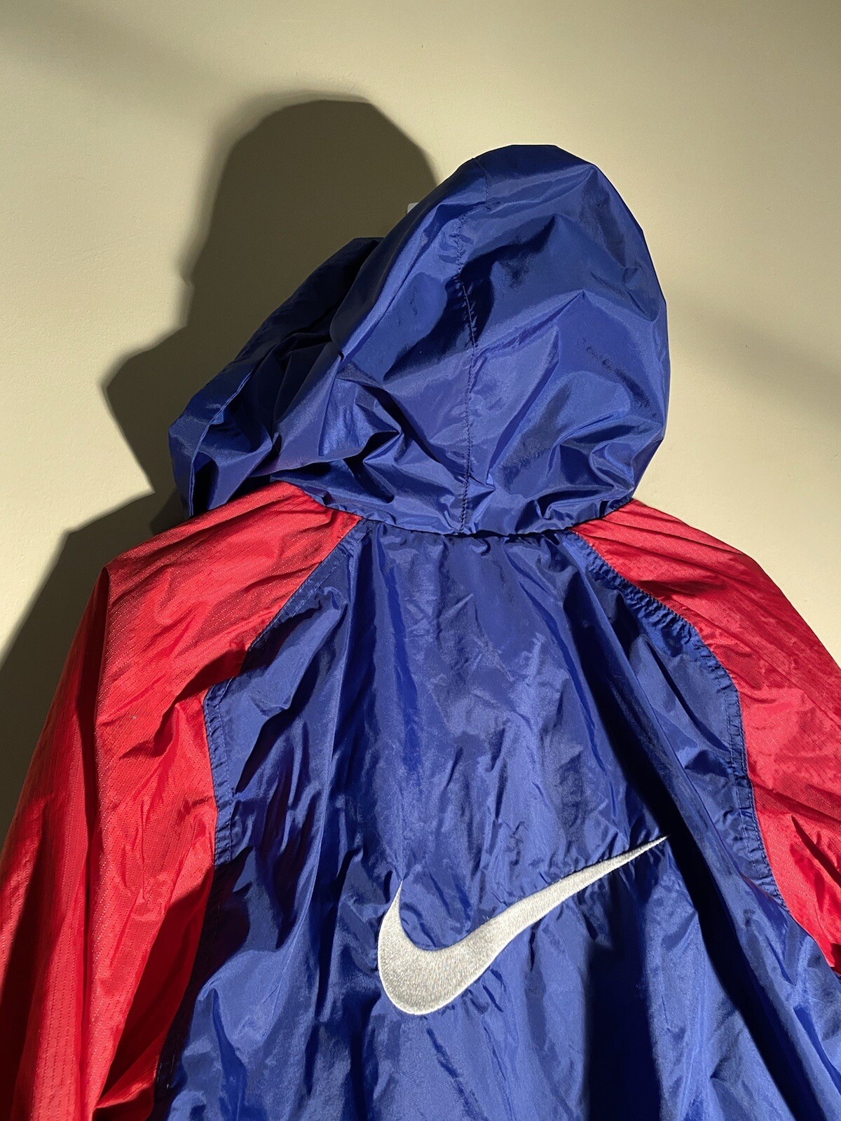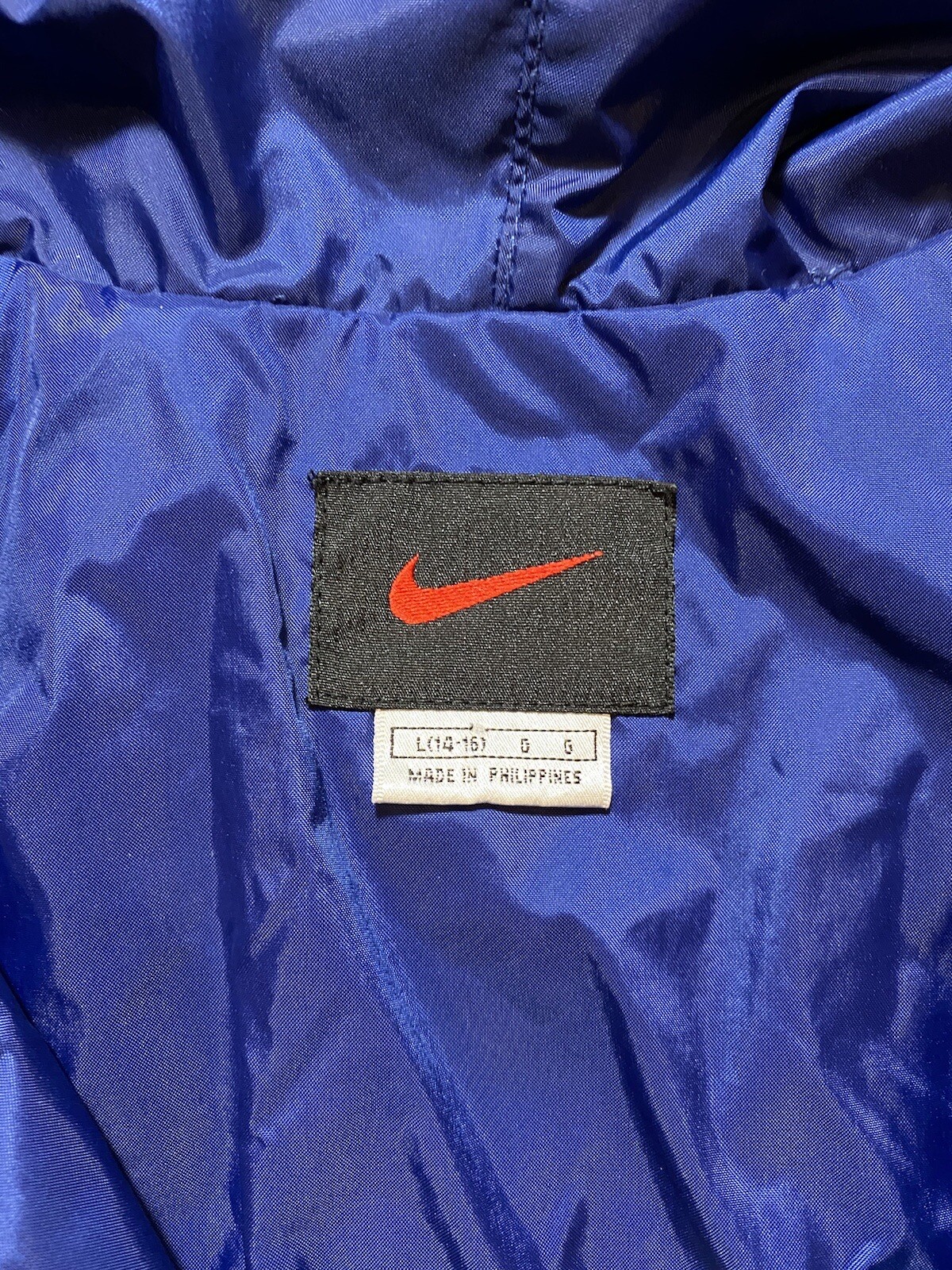 как выглядит VTG Nike Youth Jacket Large Blue Red Stripe Hooded Windbreaker Full Zip Retro фото