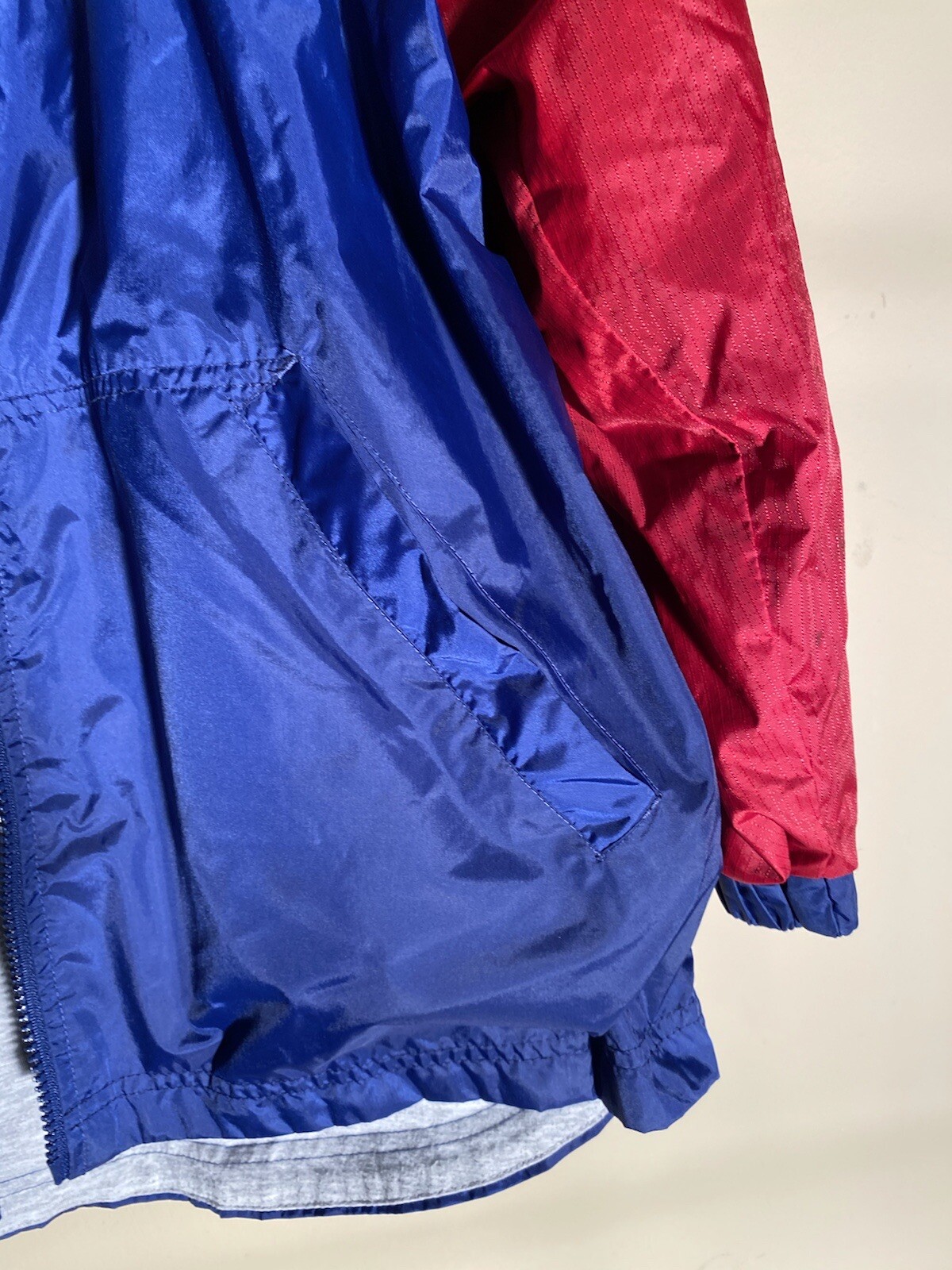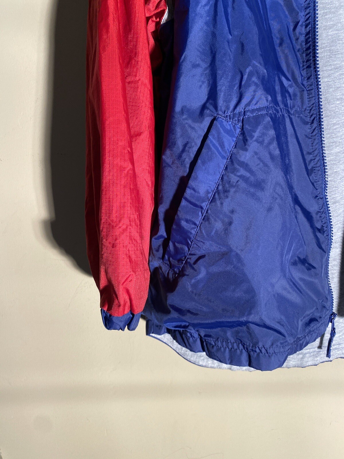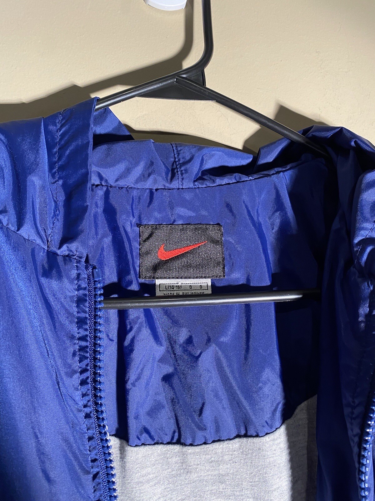 VTG Nike Youth Jacket Large Blue Red Stripe Hooded Windbreaker Full Zip Retro
