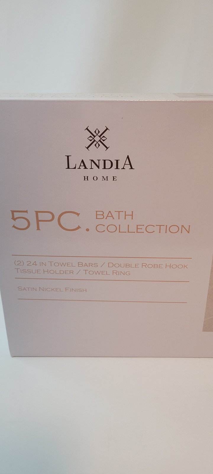 Landia Home 5-Piece Bathroom Set Satin Nickel Metal Towel Bar Hook Ring