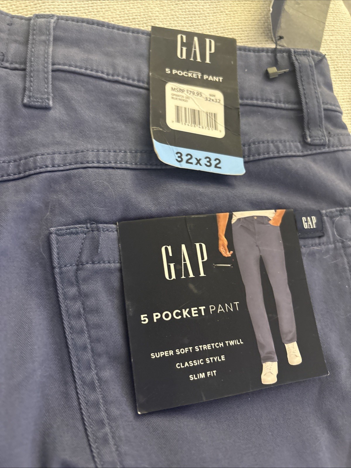 GAP Men's Blue Slim Fit Classic Style 5 Pocket Stretch Pants Mens Size 32x32 NWT