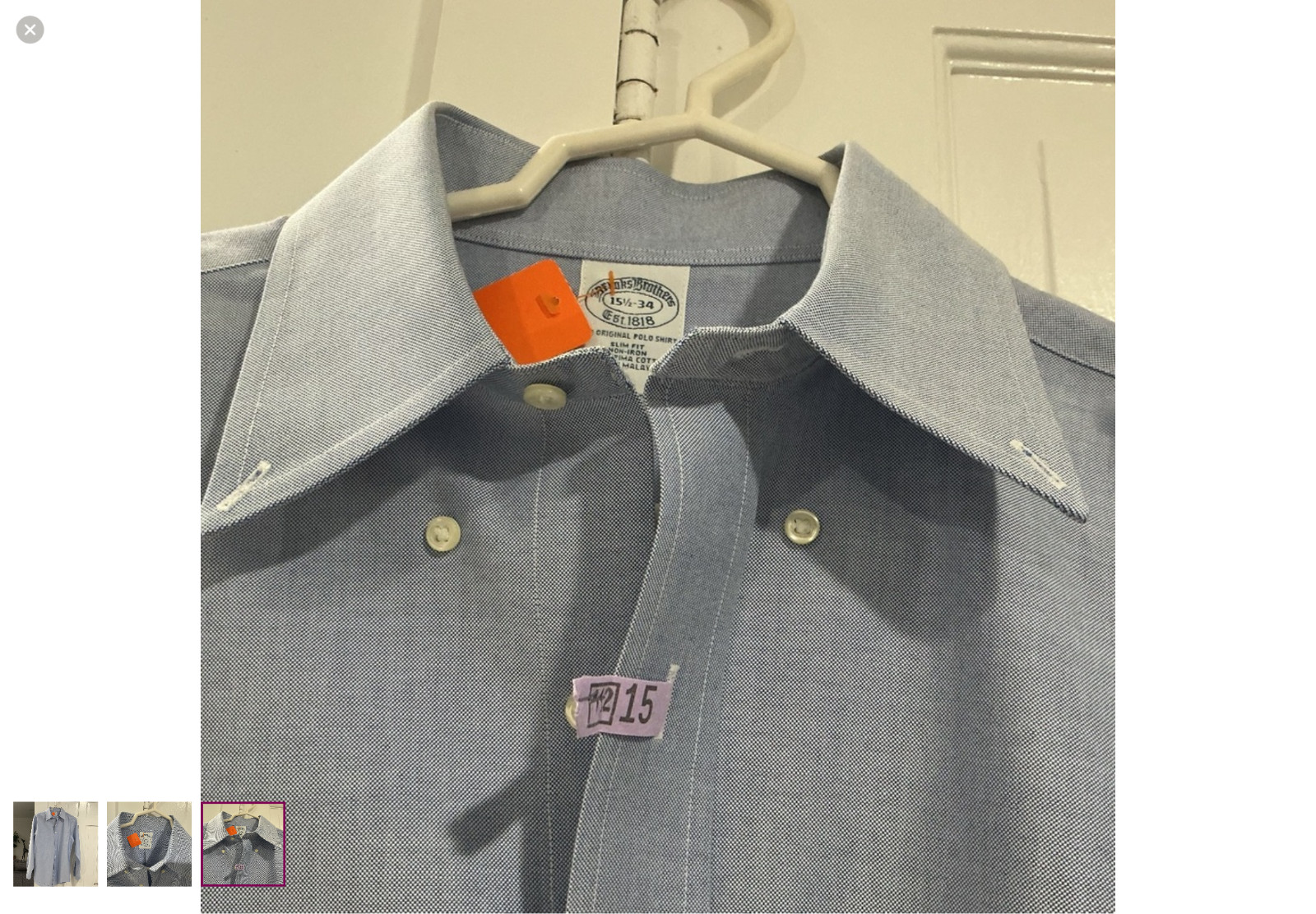 как выглядит Brooks Brothers Slim Fit Mens Non Iron Blue Supima Cotton Oxford 15.5-34 фото