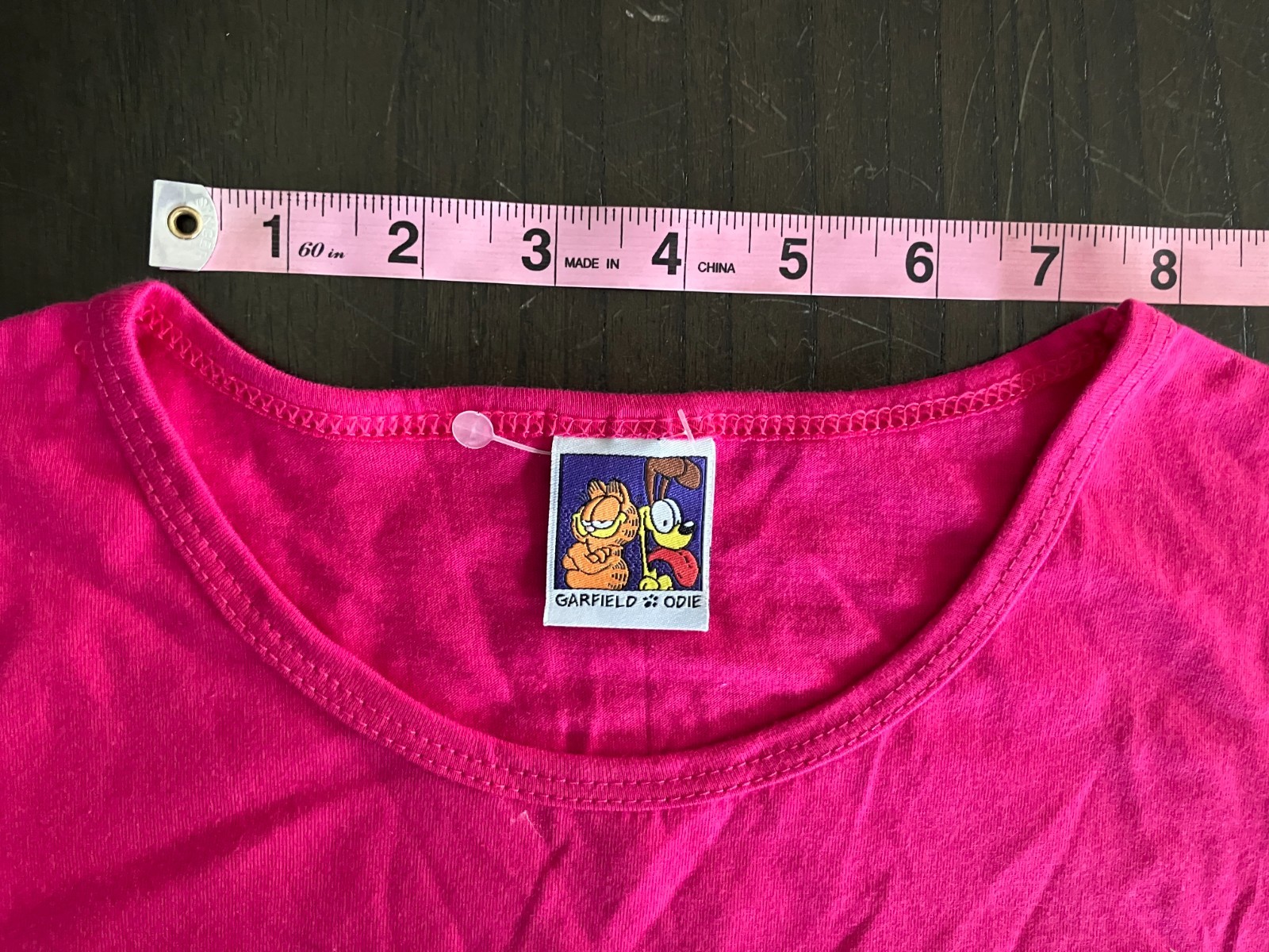 как выглядит Vintage PAWS Garfield with Flowers Nightshirt in Pink, tag says M please read фото