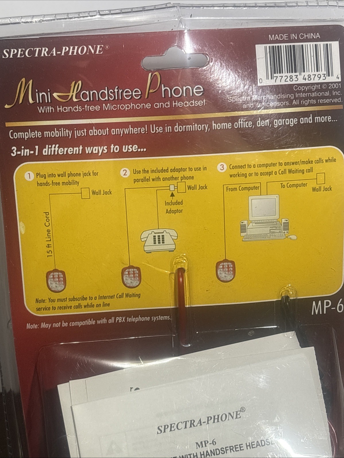 NEW SEALED VTG mini handsfree phone Spectra Phone hands free microphone headset