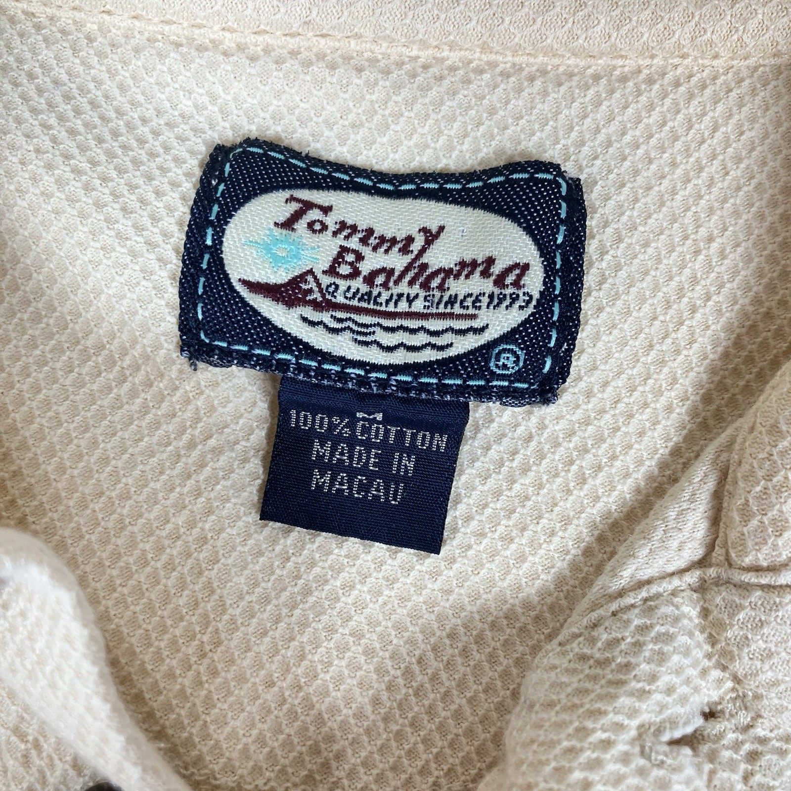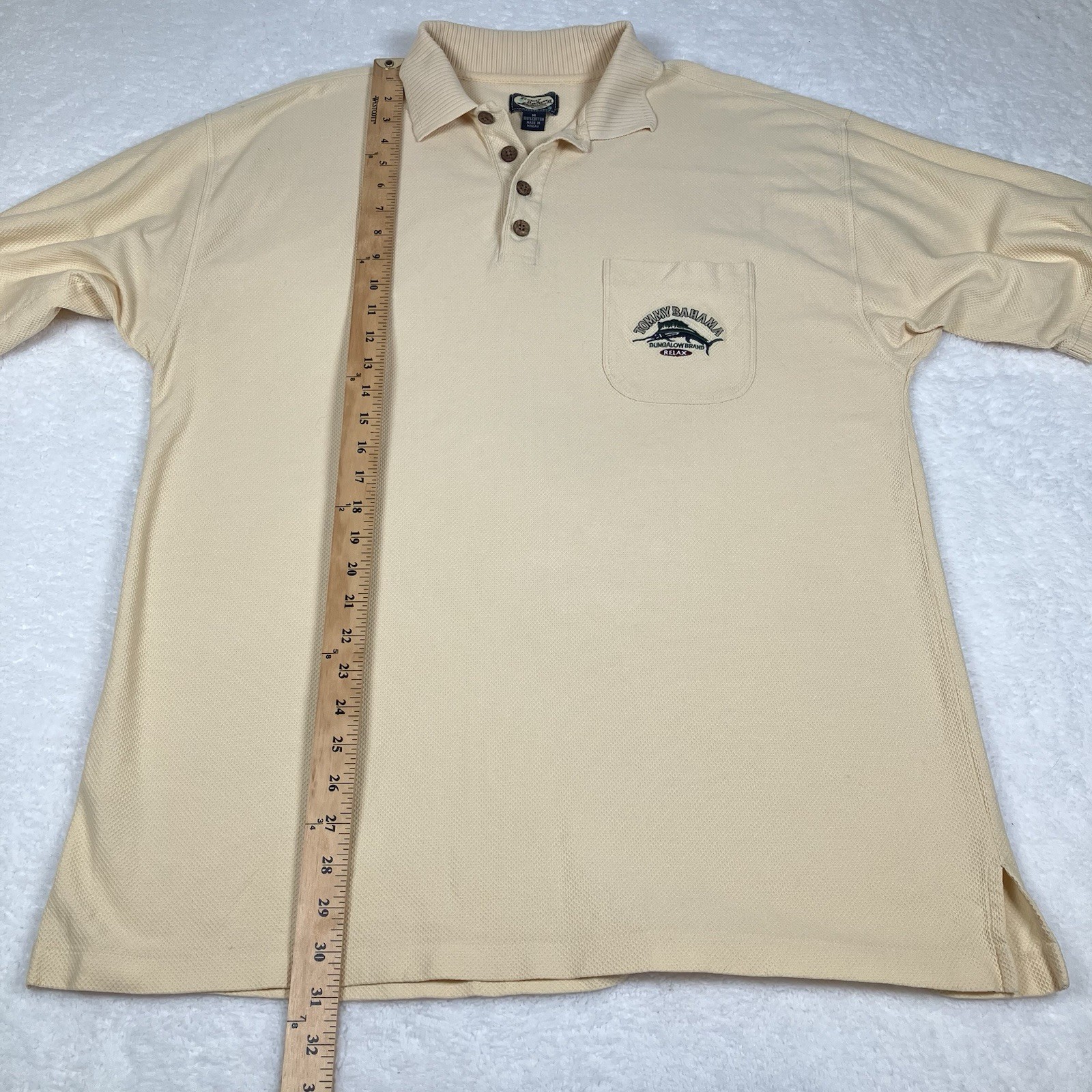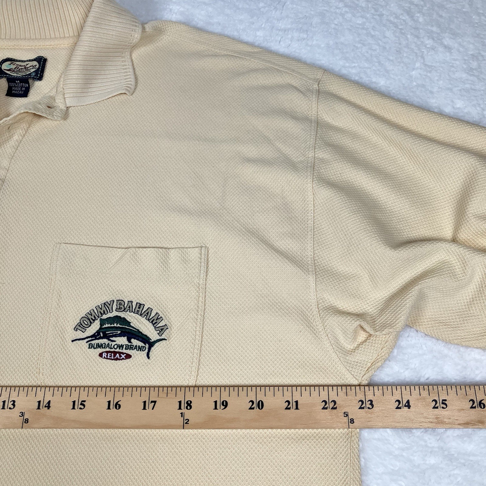 как выглядит Vtg Tommy Bahama Pale Yellow Relax Bungalow Embroidered Mens Medium Polo Shirt фото