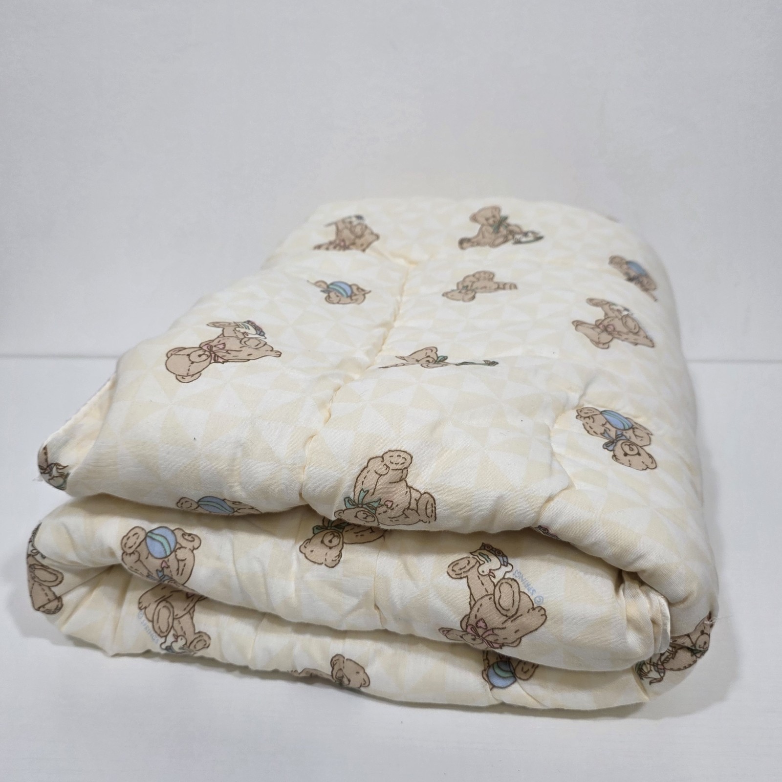Vintage Teddy Bear Baby Quilt Comforter Crib Blanket Reversible Cream 996