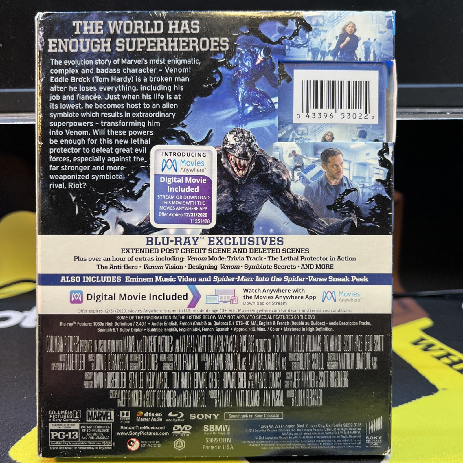 Venom Blu-ray DVD 2018 With Slipcase Free Shipping No Digital Copy
