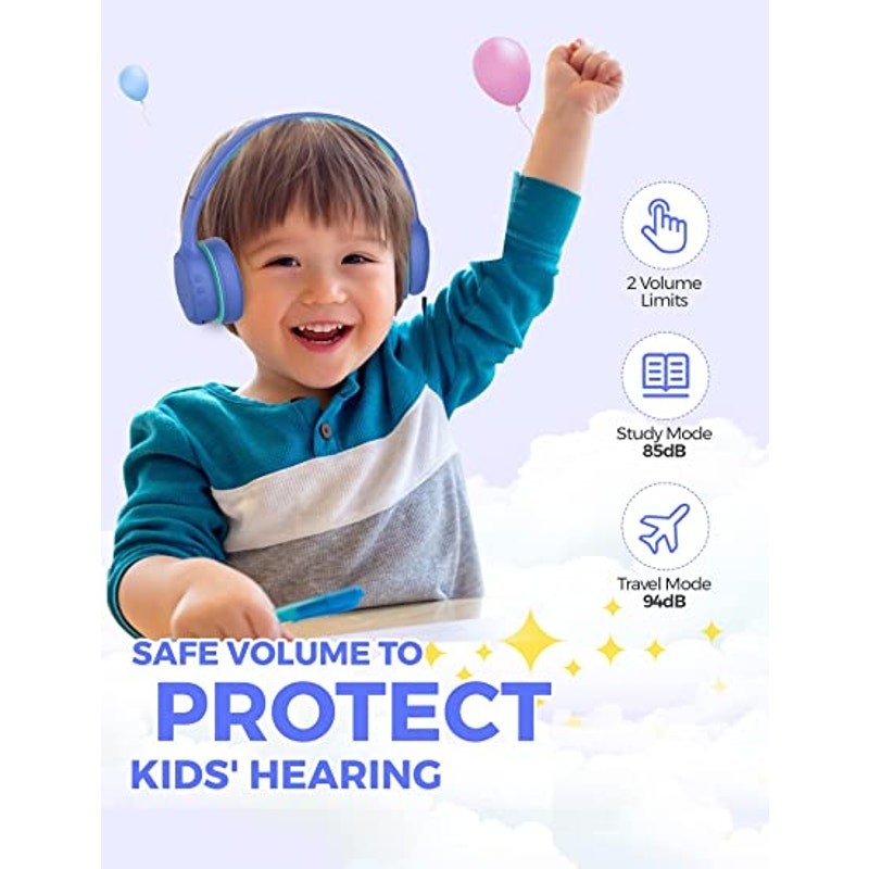 Bluetooth Kids Wireless Headphones Microphone 85/94dB Volume Limited Blue NEW