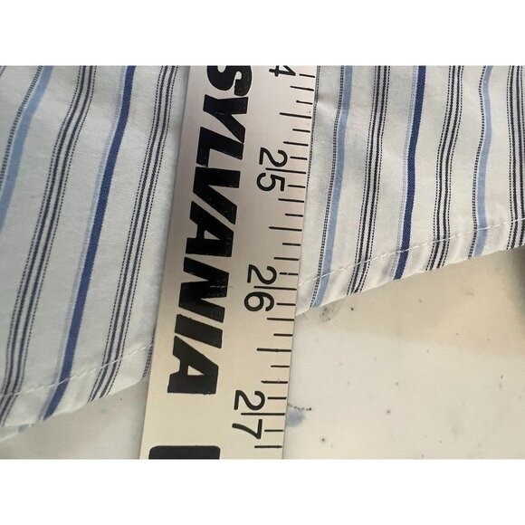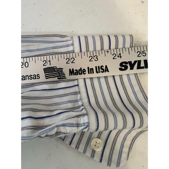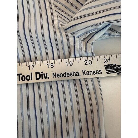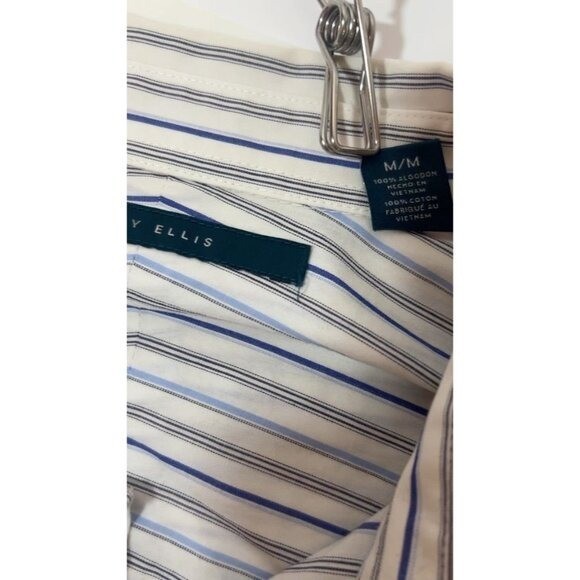 как выглядит Perry Ellis Mens M LS Shirt Cotton Button Down Dress Blue White Striped фото