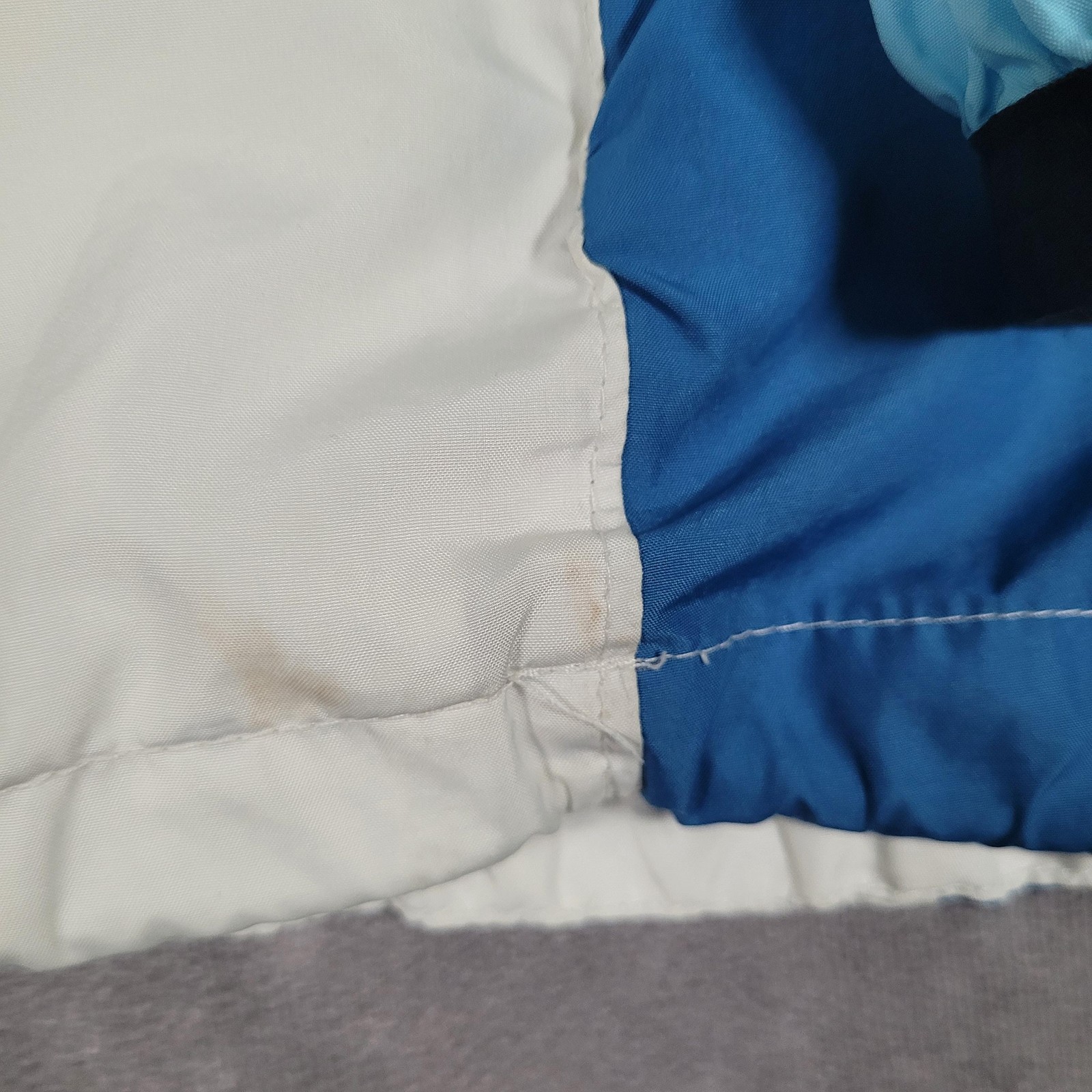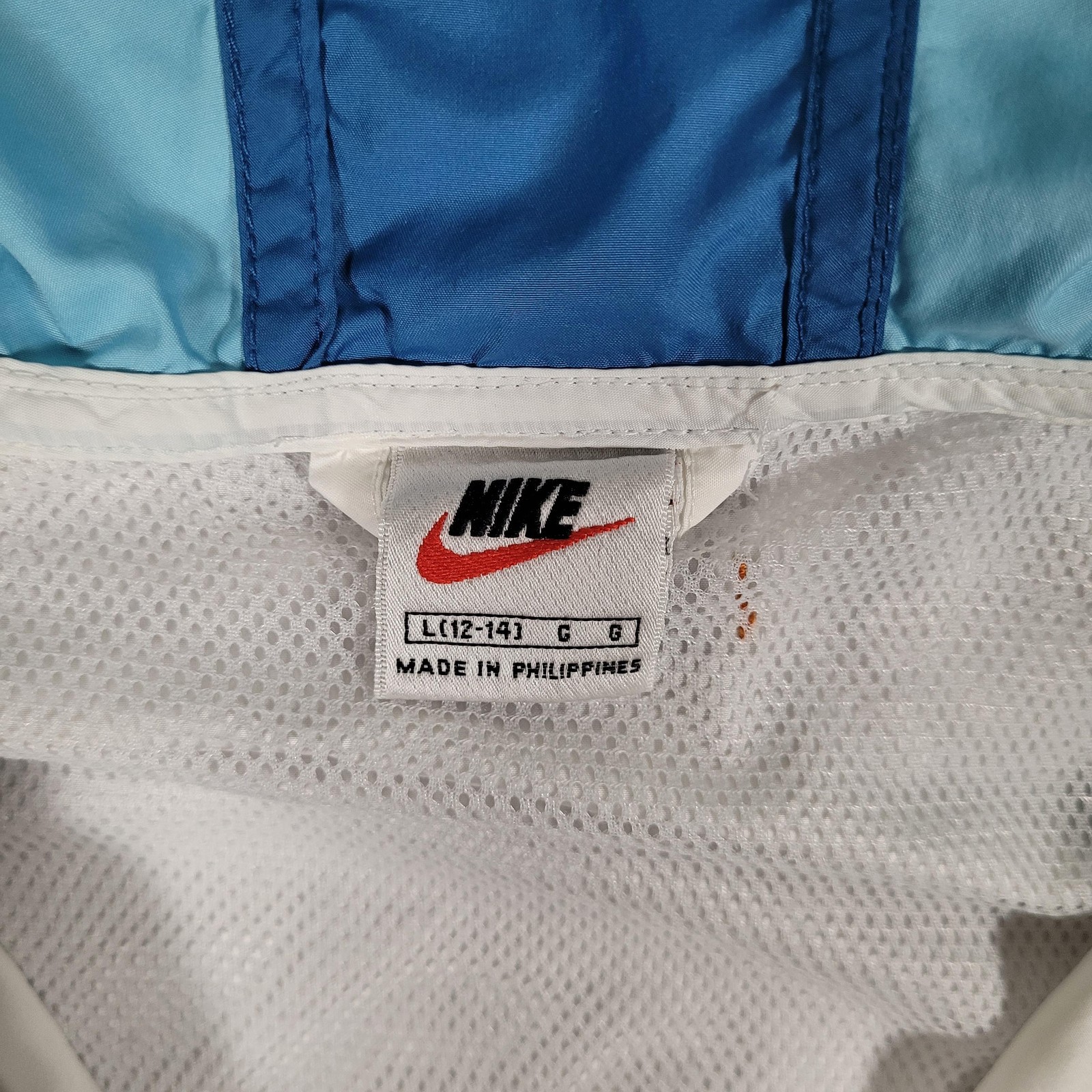 Vintage Nike Jacket Boys Large 12-14 Blue White Colorblock Hooded Windbreaker