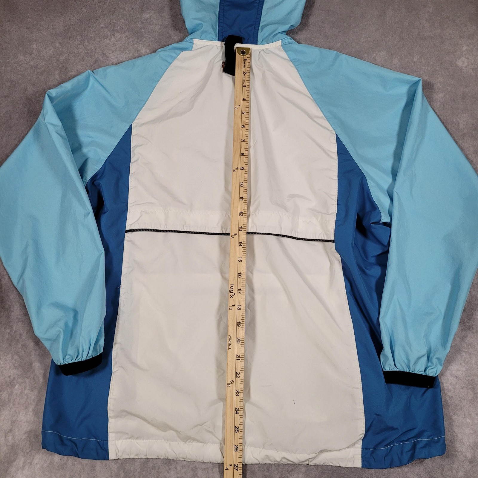 как выглядит Vintage Nike Jacket Boys Large 12-14 Blue White Colorblock Hooded Windbreaker фото