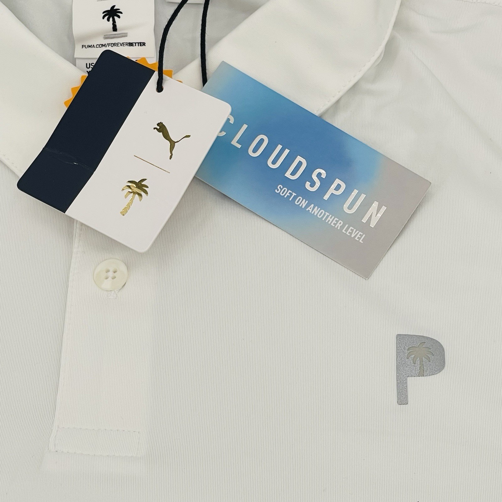 Puma Golf Palm Tree Club Polo Shirt Mens XL White SPF 30 Cloudspun