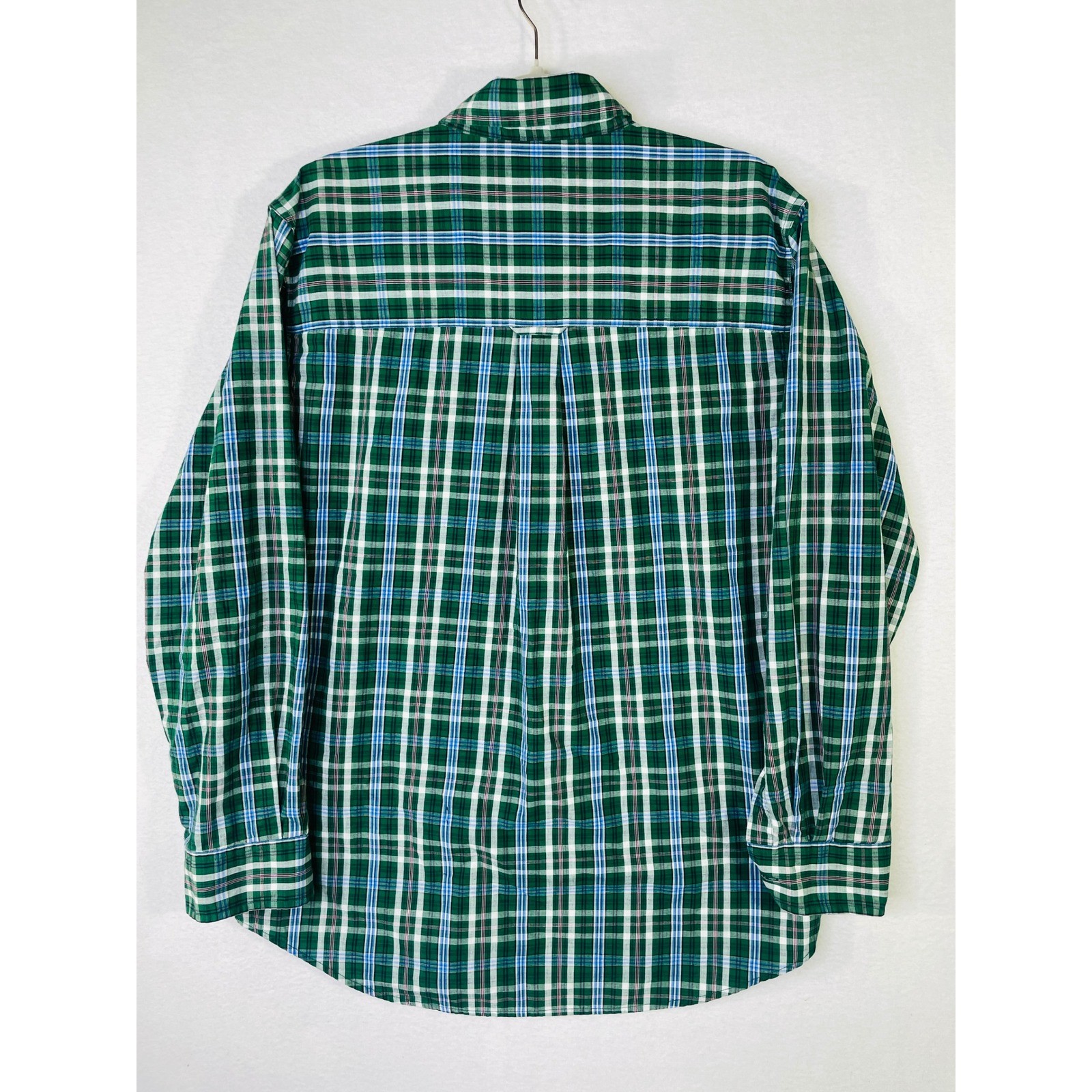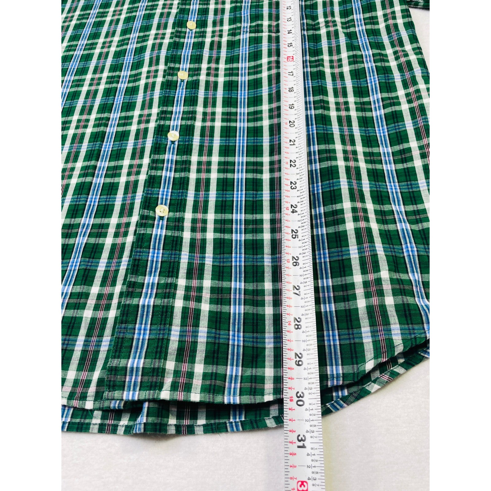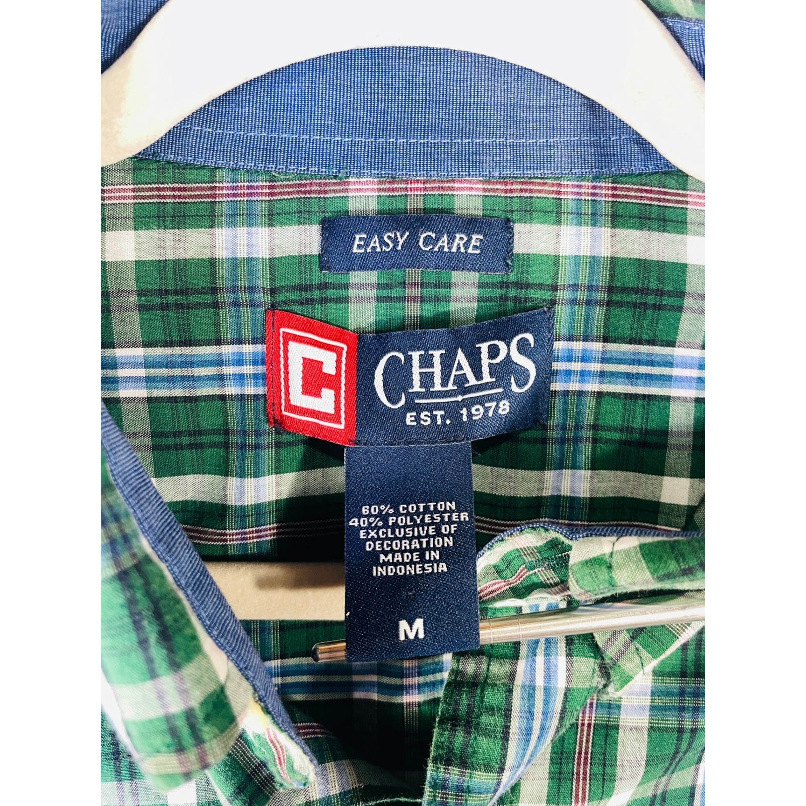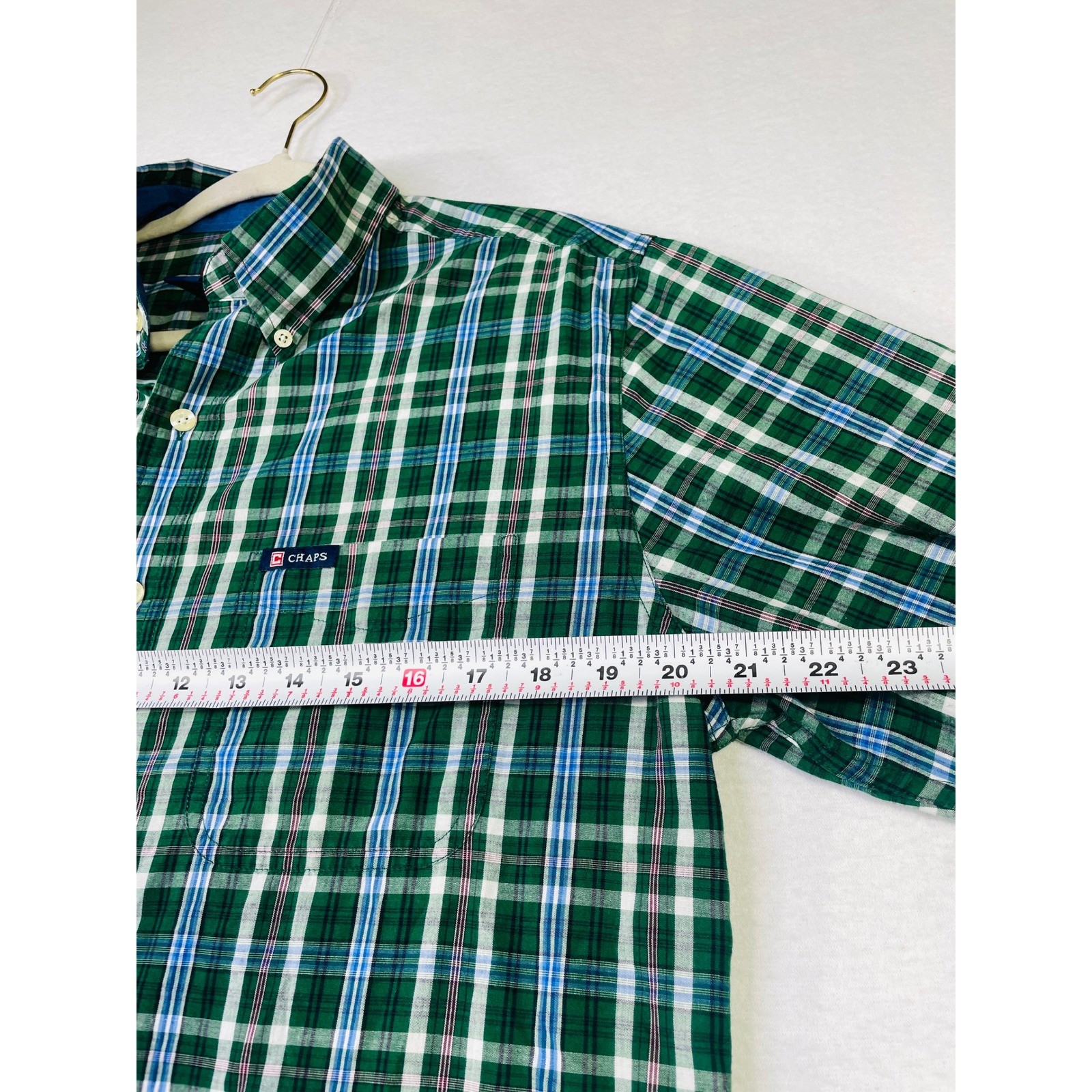 Chaps Mens Medium Green Plaid Easy Care Long Sleeve Button Down Shirt Pocket
