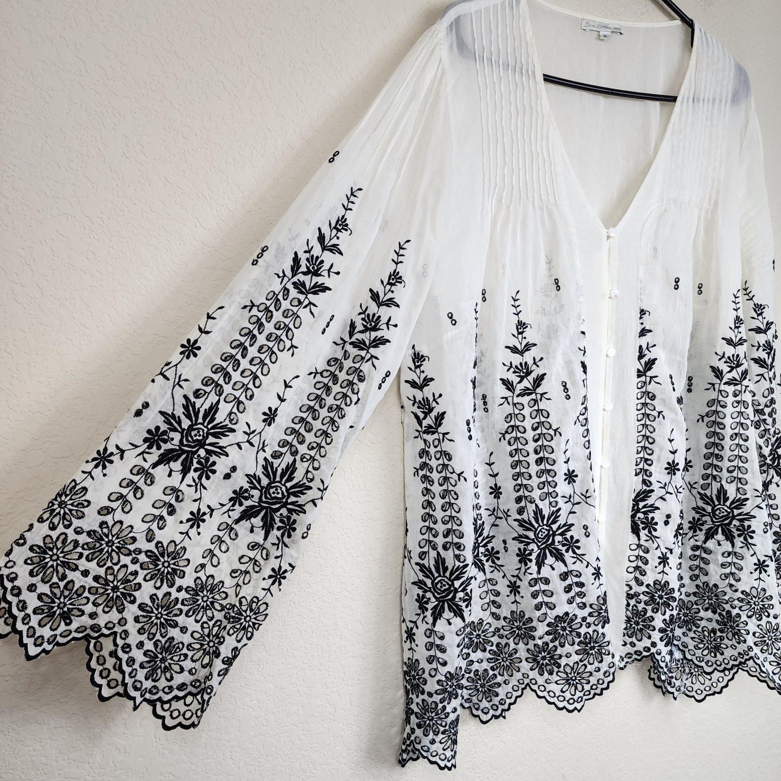как выглядит Johnny Was Silk Embroidered Long Sleeve Sheer Boho Blouse фото