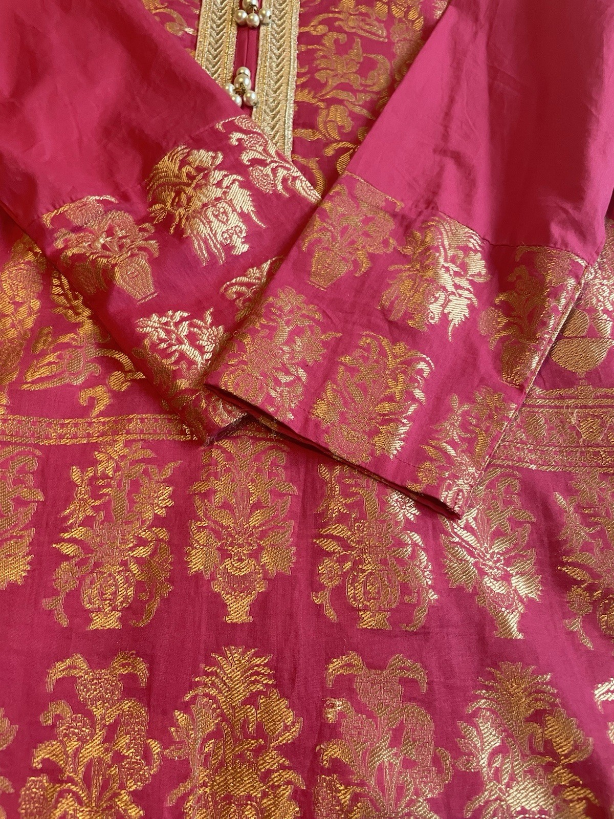 как выглядит Khadi brand Pink Gold Kurta Kurti Womens Size 10 Pearl Buttons фото