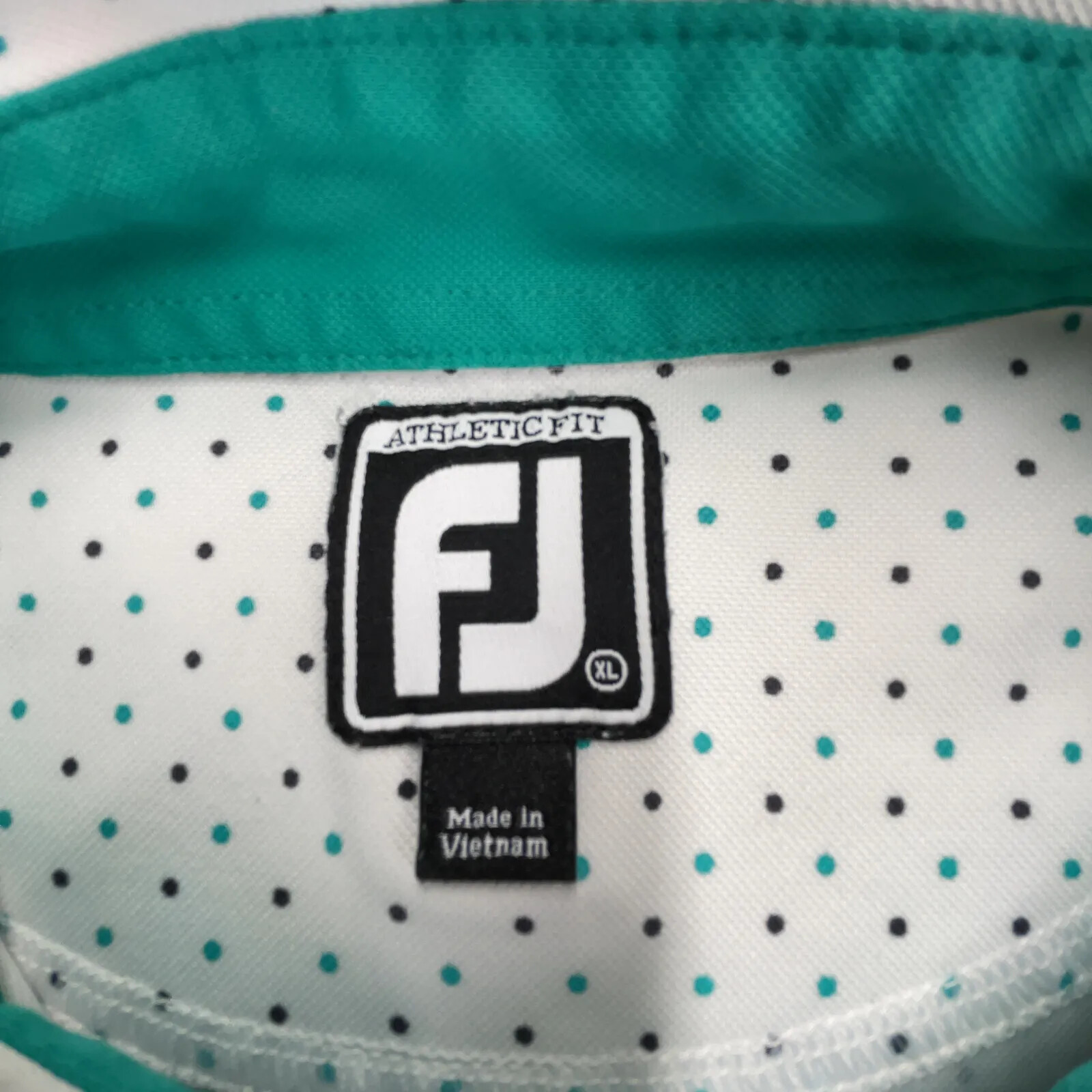 FJ FootJoy Shirt Mens XL White Polka Dot Polo Golf Outdoors Lightweight Casual