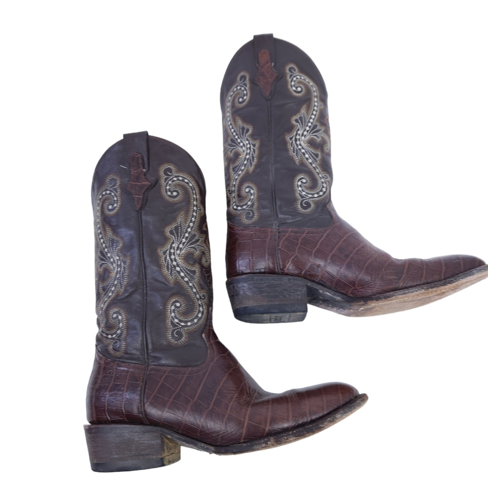 Ferrini Leather Cowboy Western Boots Brown 8.5 Men Pull On Boots Embroidered