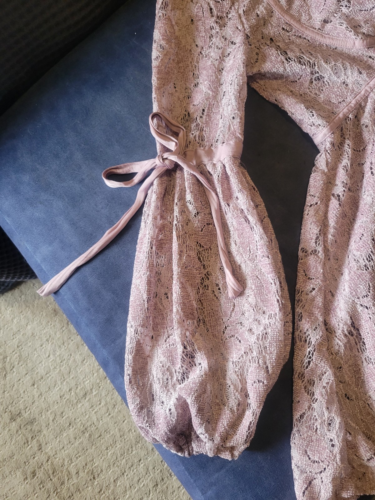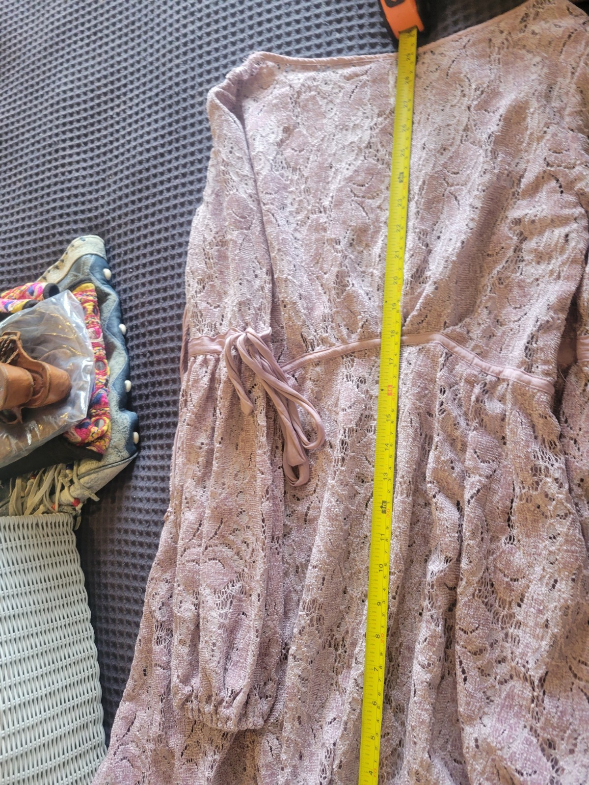 как выглядит VINTAGE FREE PEOPLE PURPLE SHEER LACE MINI DRESS Size XS Bohemian GLAM Romantic фото