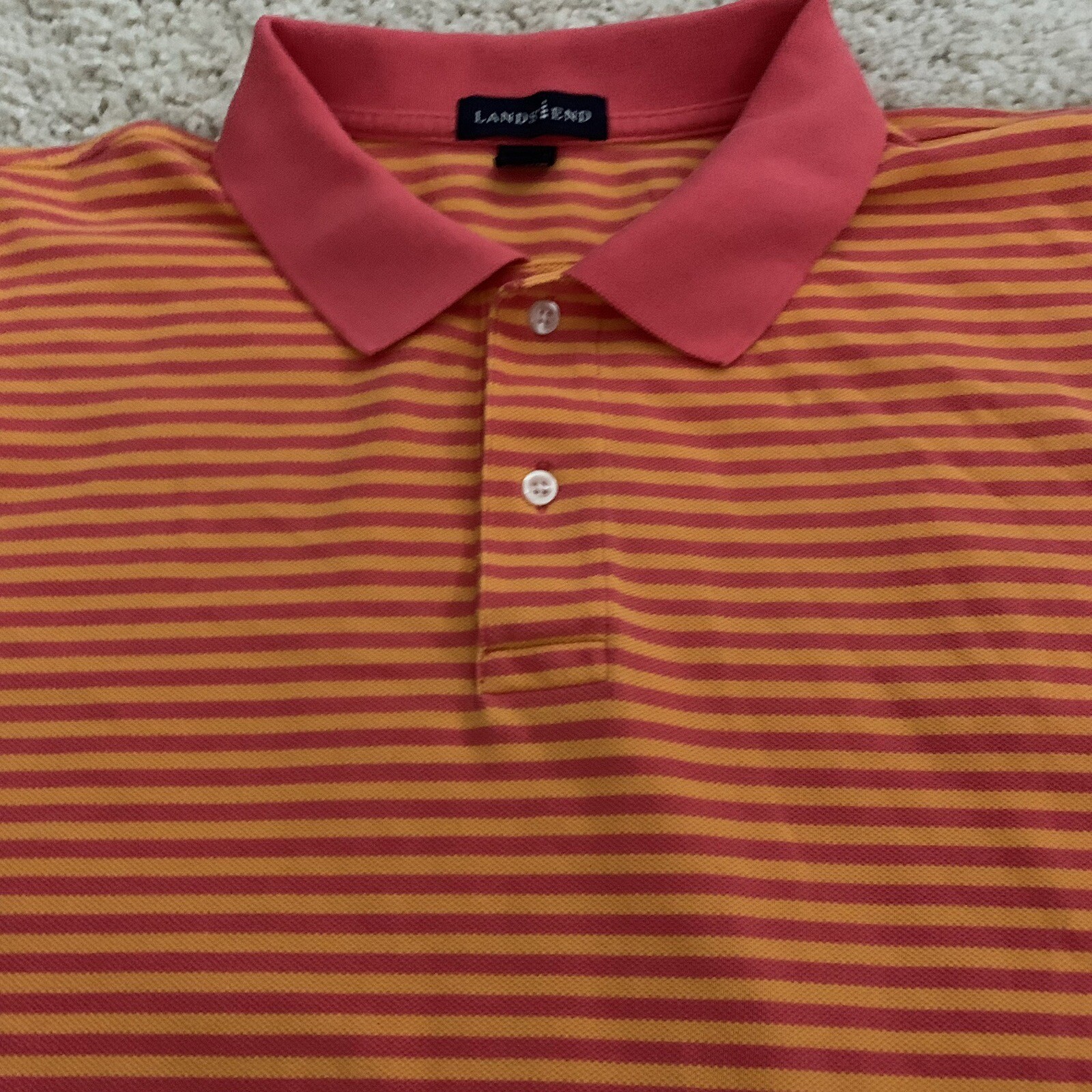 как выглядит Lands End Polo Shirt Mens Sz XL 46-48 Orange Pink Striped Mesh Cotton фото