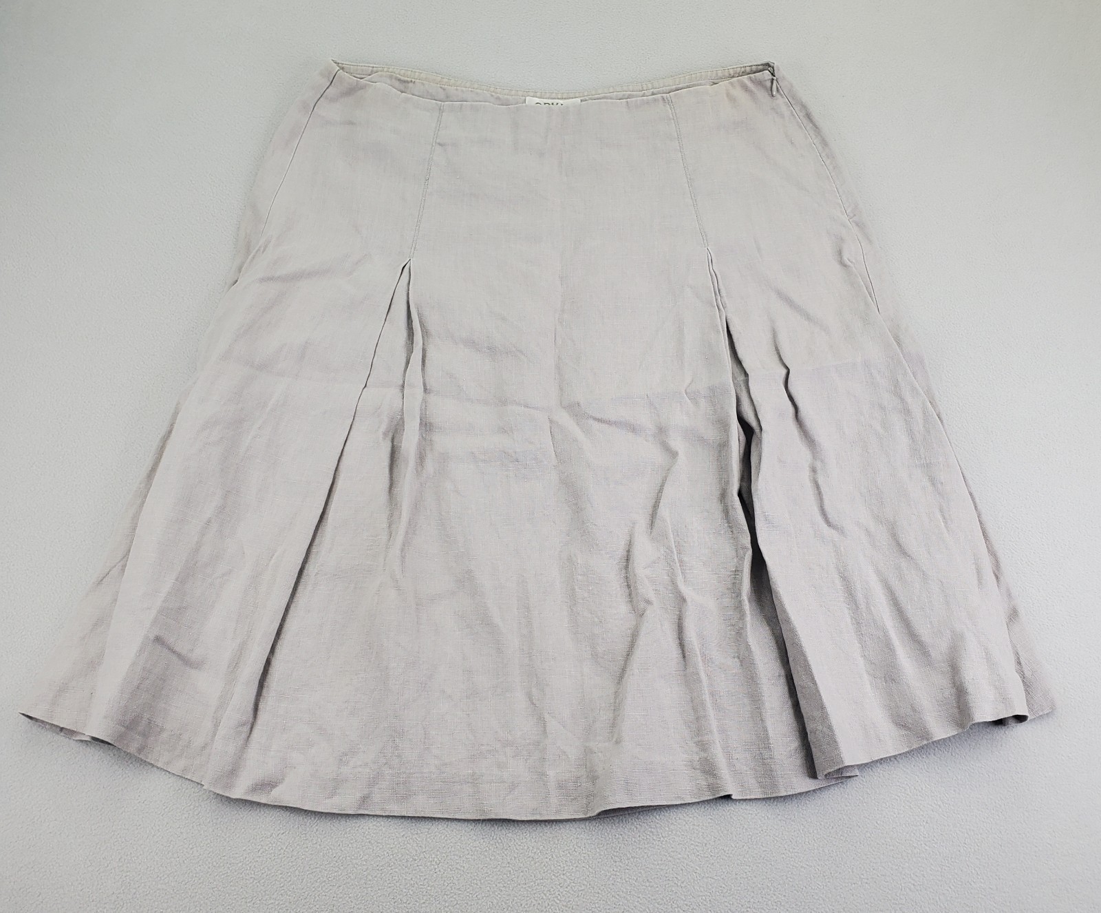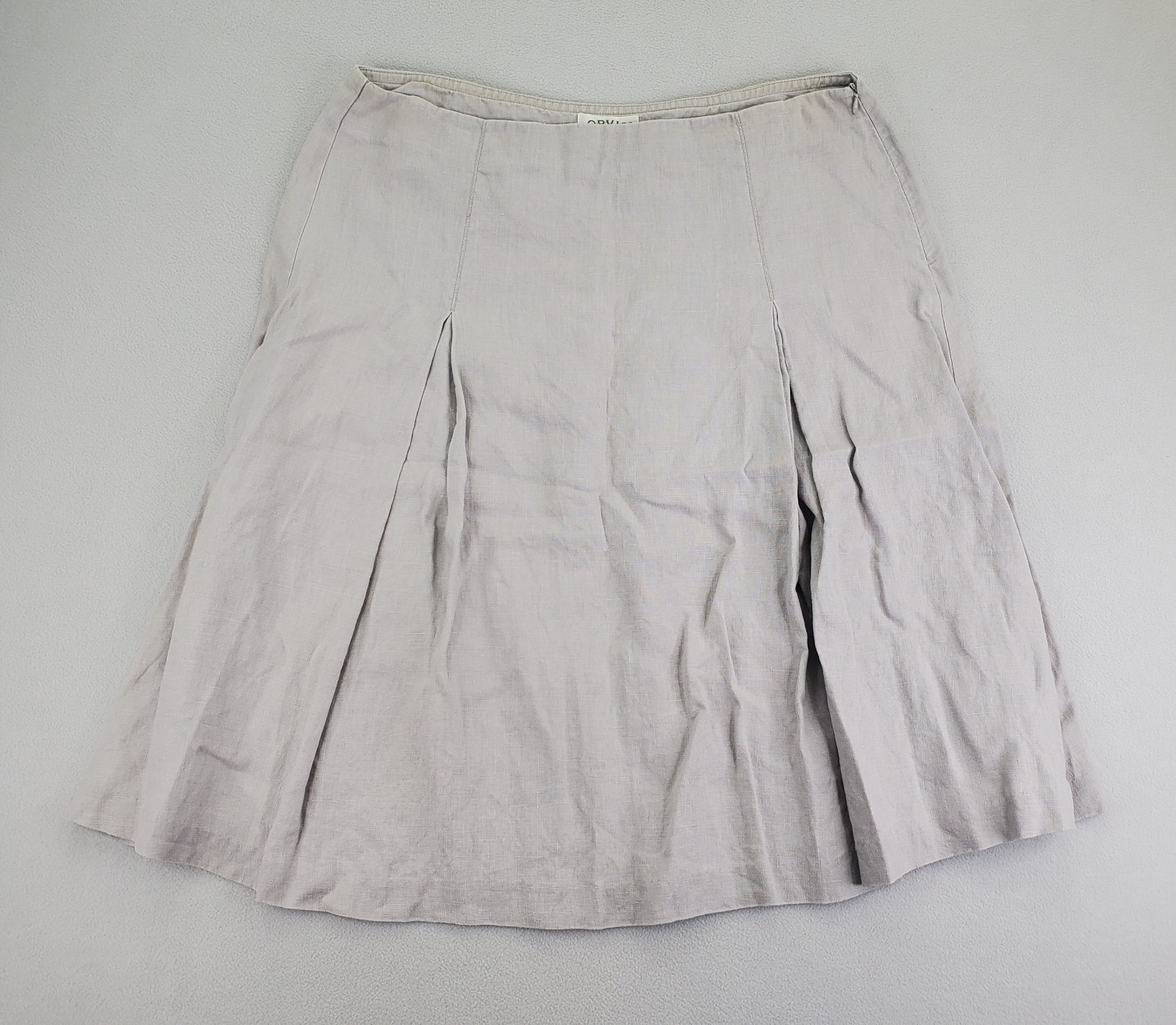 как выглядит Orvis Linen Skirt Women 12 Gray Taupe Pleated A Line Knee Length Hidden Zipper фото