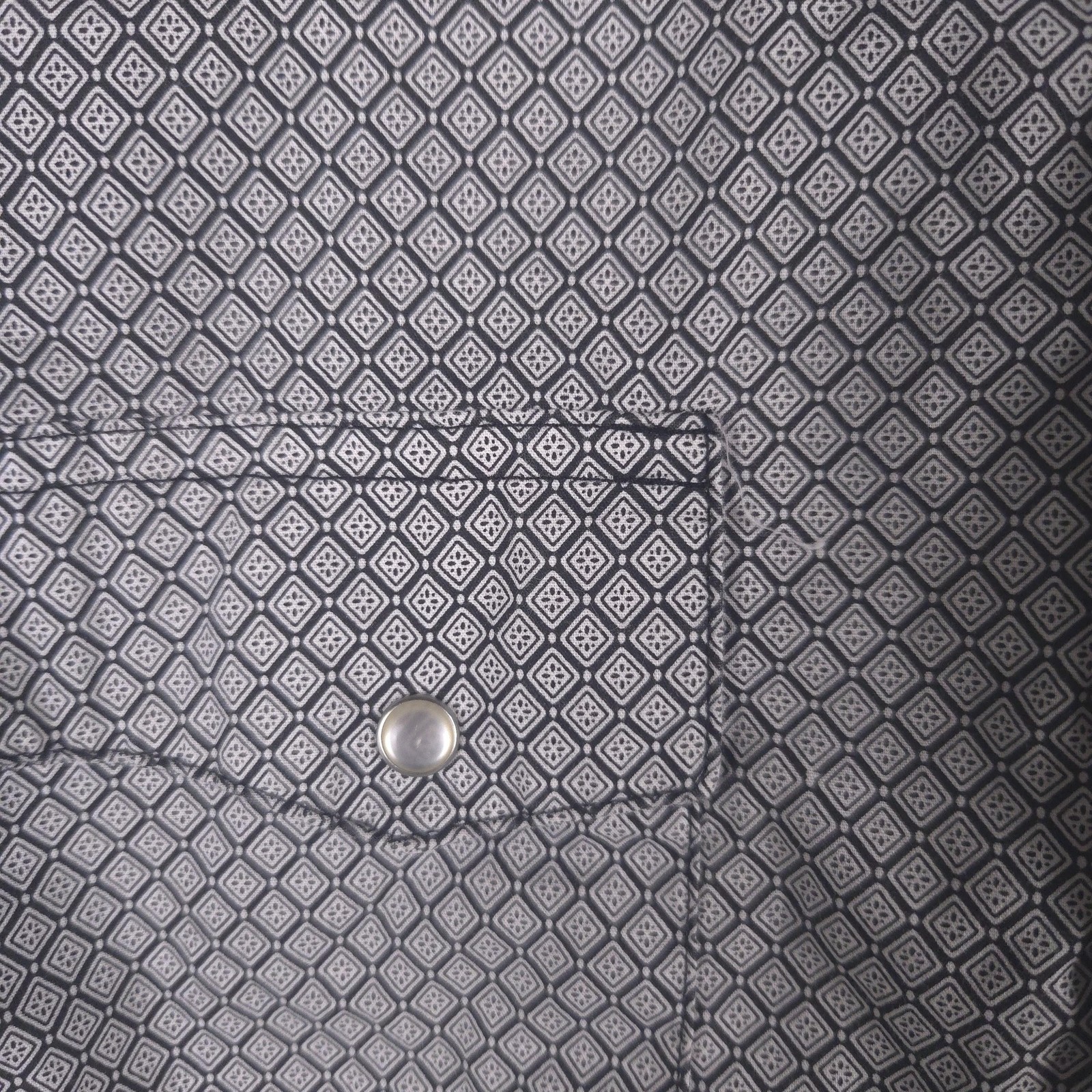 как выглядит Wrangler Shirt Men M White Geometric Pearl Snap Western Short Sleeve Micro Print фото