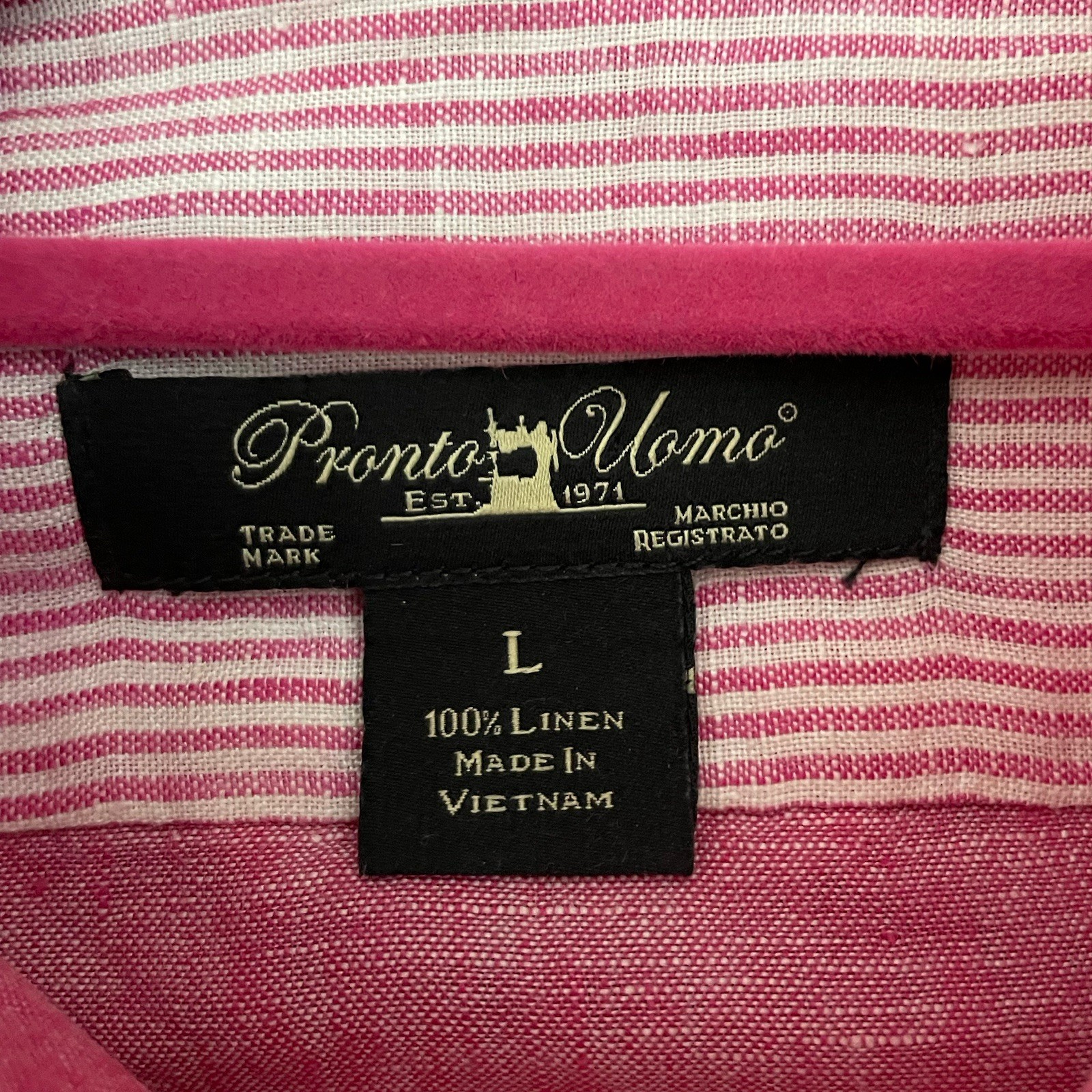 PRONTO UOMO Mens 100 LINEN L PINK LONG SLEEVE BUTTON DOWN SHIRT