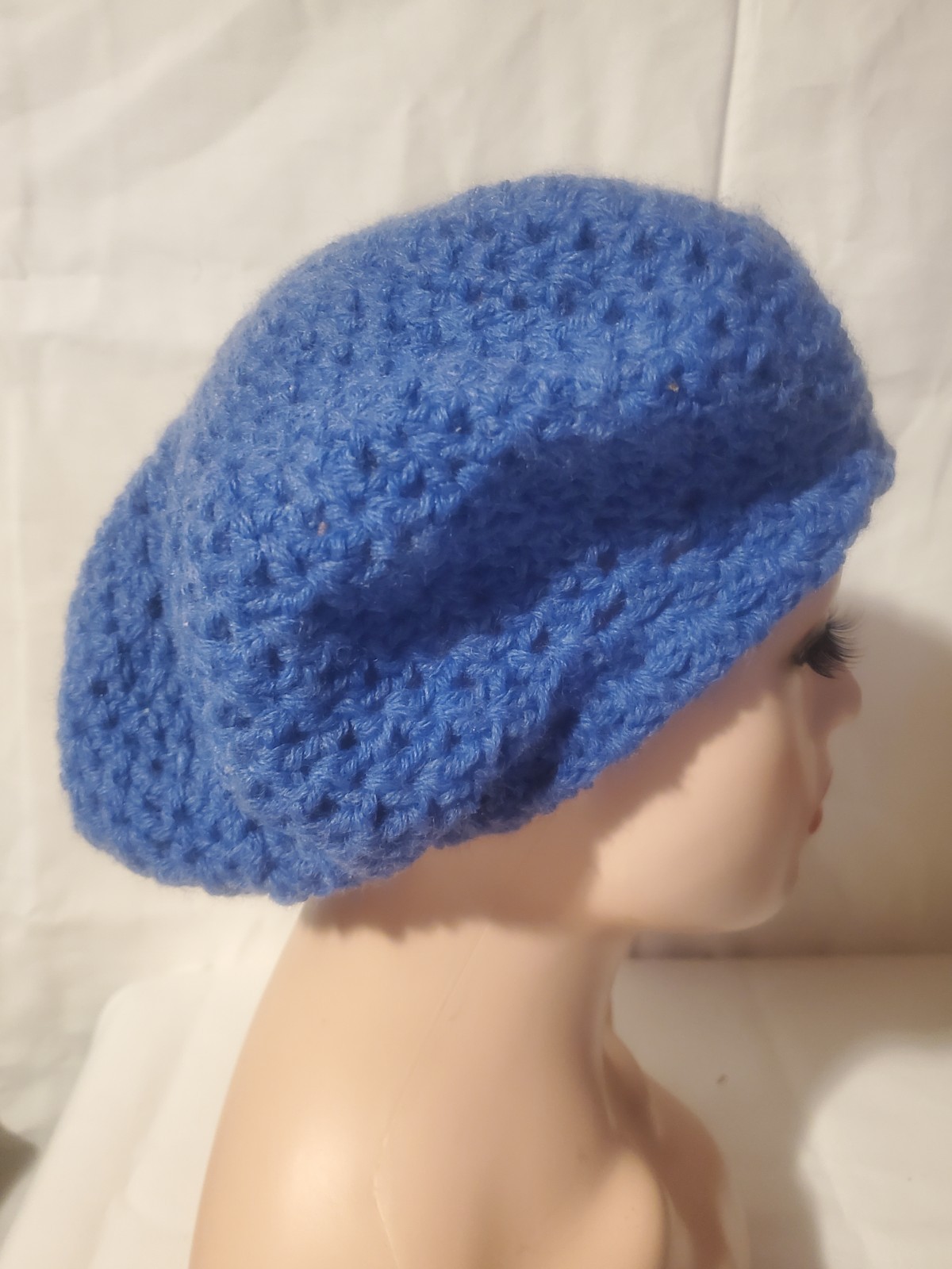 Handmade Crocheted Blue Slouch Beanie Hat KnitWinter Cap Unisex