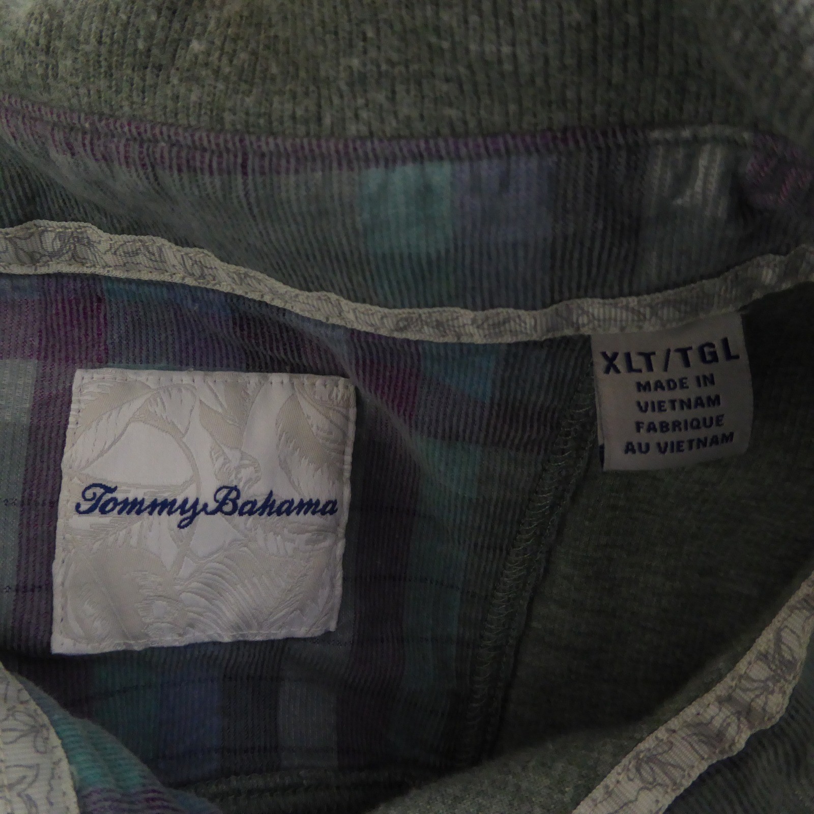 Tommy Bahama Mens Knit Polo Sweater Shirt Green Plaid Trim Long Sleeve XLT