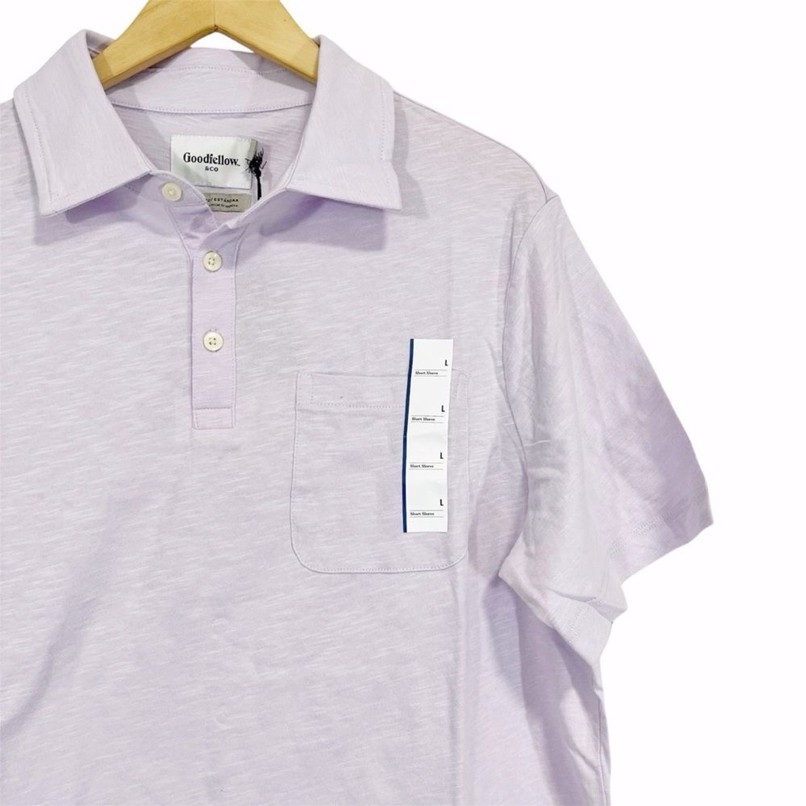 как выглядит Goodfellow Co Light Purple Short Sleeve Slub Jersey Mens Polo Shirt L фото