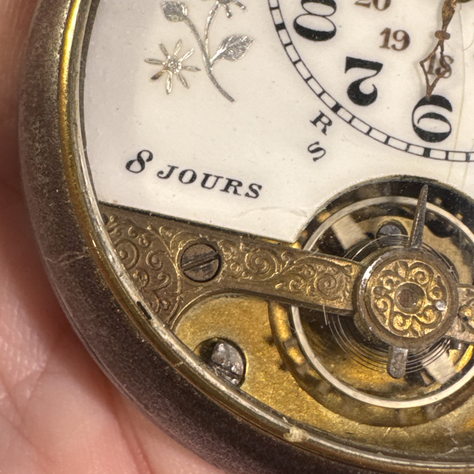 Antique Vtg Hebdomas 8 Days Jours Swiss Pocket Watch Works Runs