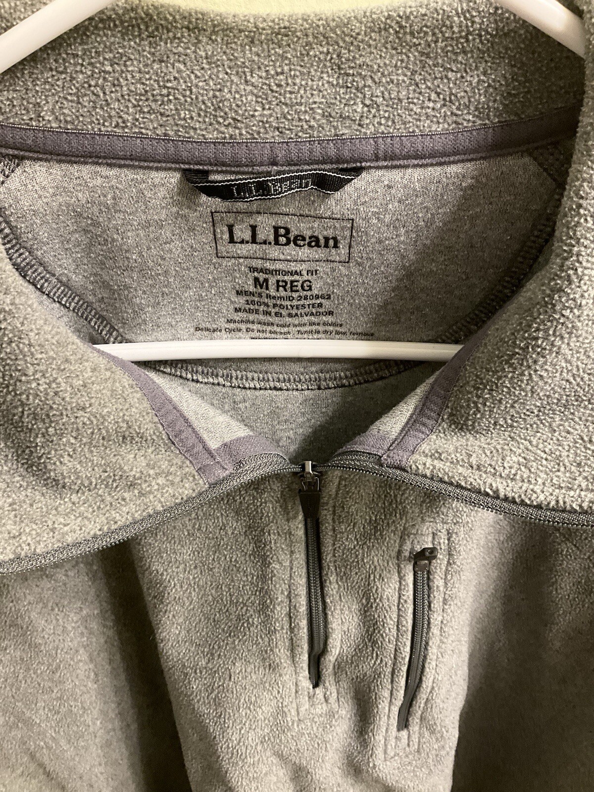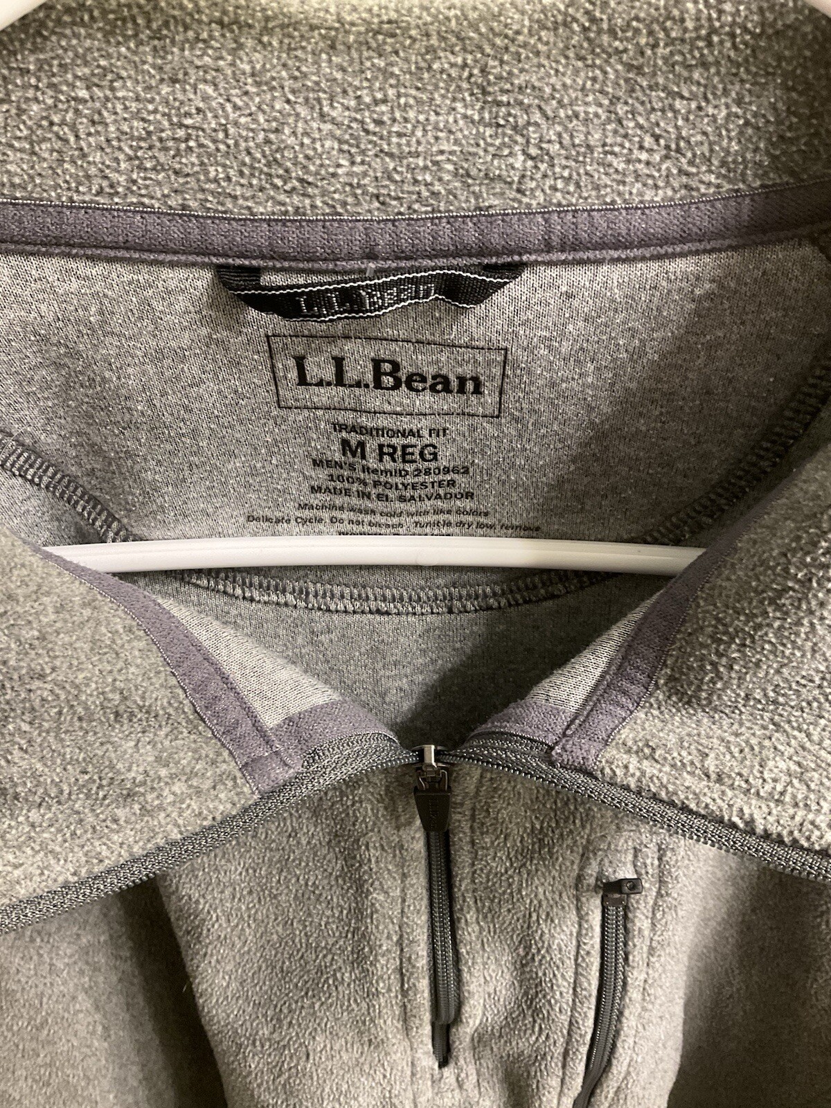 как выглядит LL Bean Mens Medium Reg Gray Fleece 1/4 Zip Pullover Jacket Coat Dark Gray EUC фото