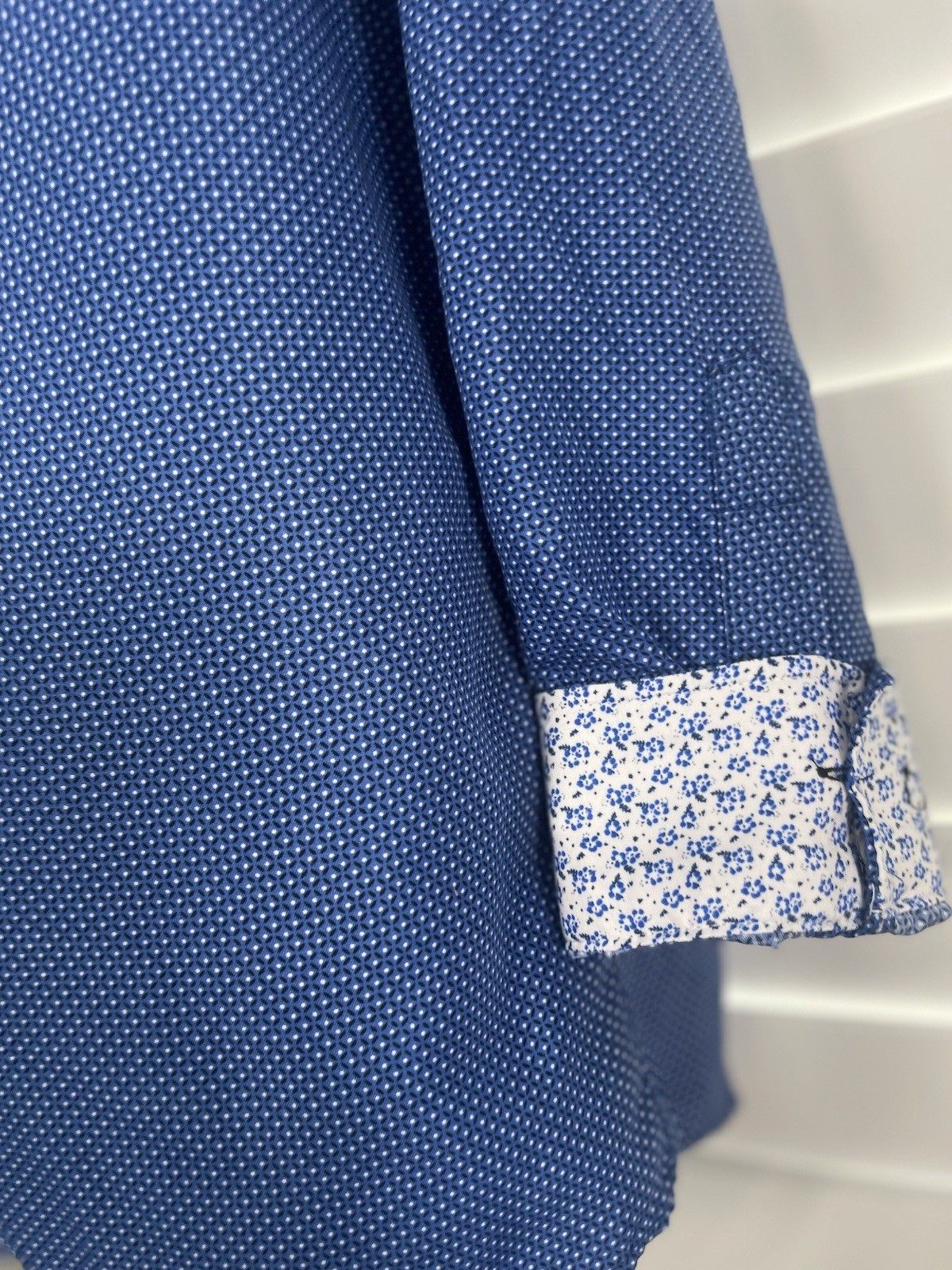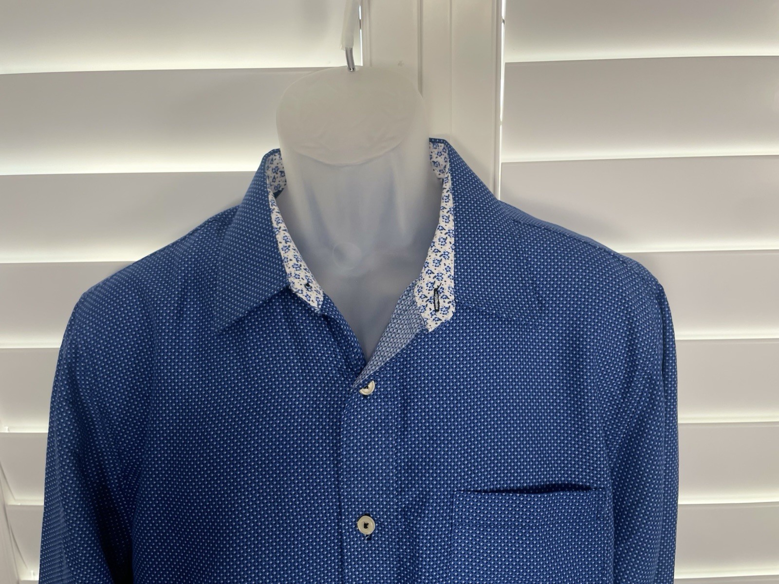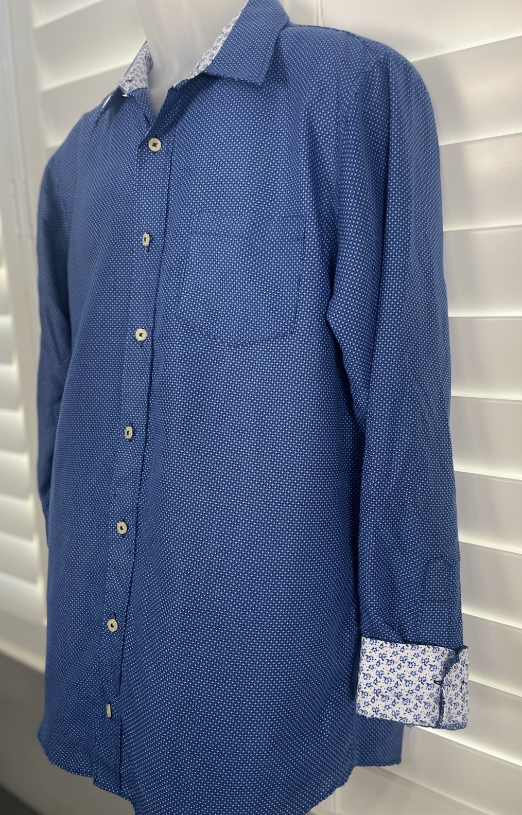 как выглядит Nick Graham Everywhere Shirt L 34 35 Modern Fit Button Up Stretch Blue Geometric фото