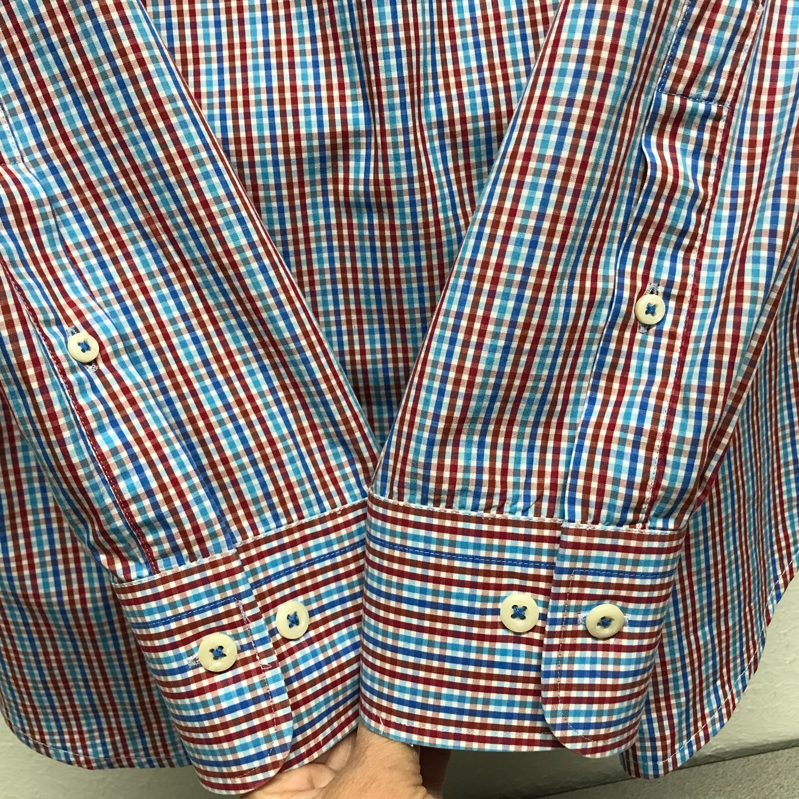 как выглядит Peter Millar Shirt Mens L Blue Red Gingham Check Button Down Long Sleeve Pocket фото