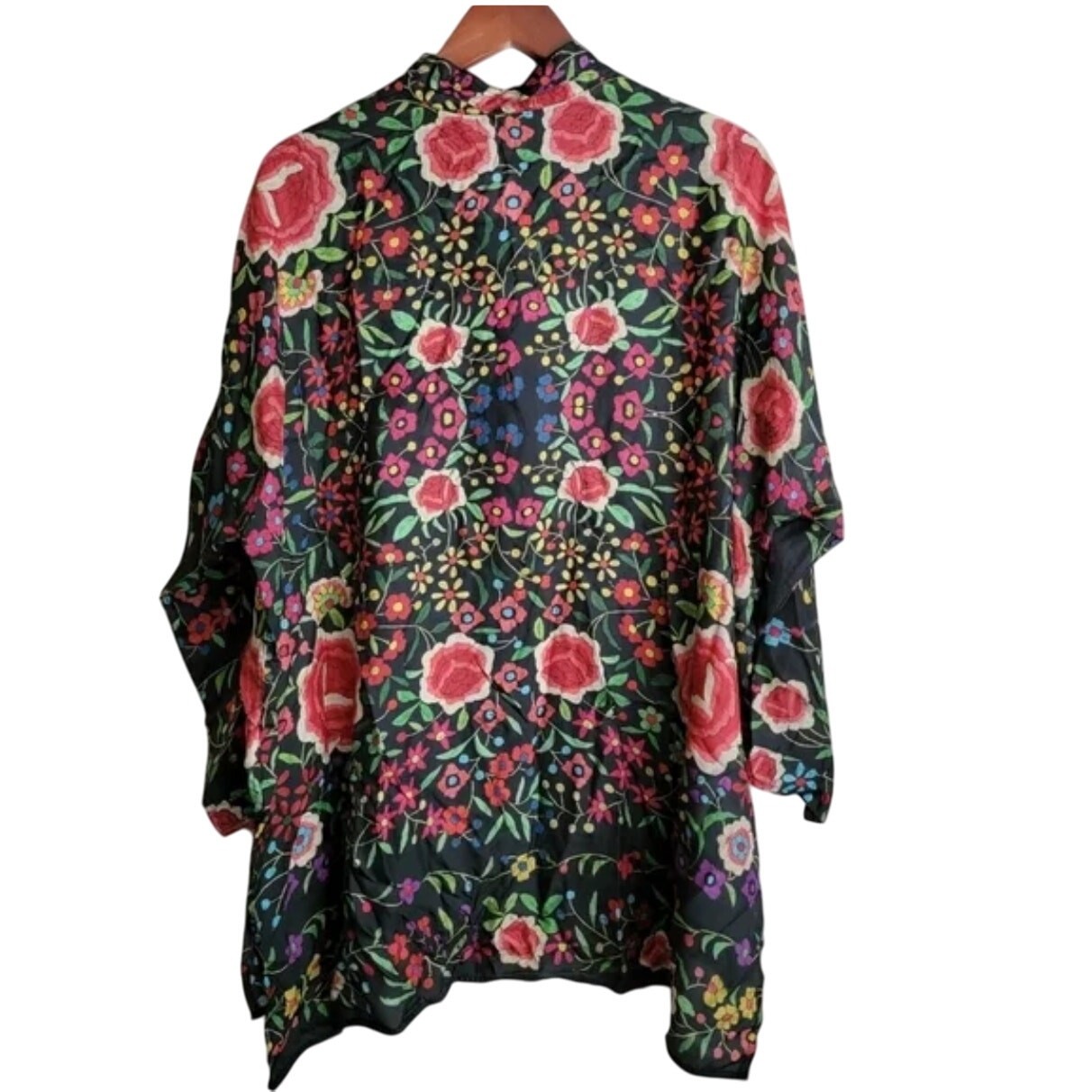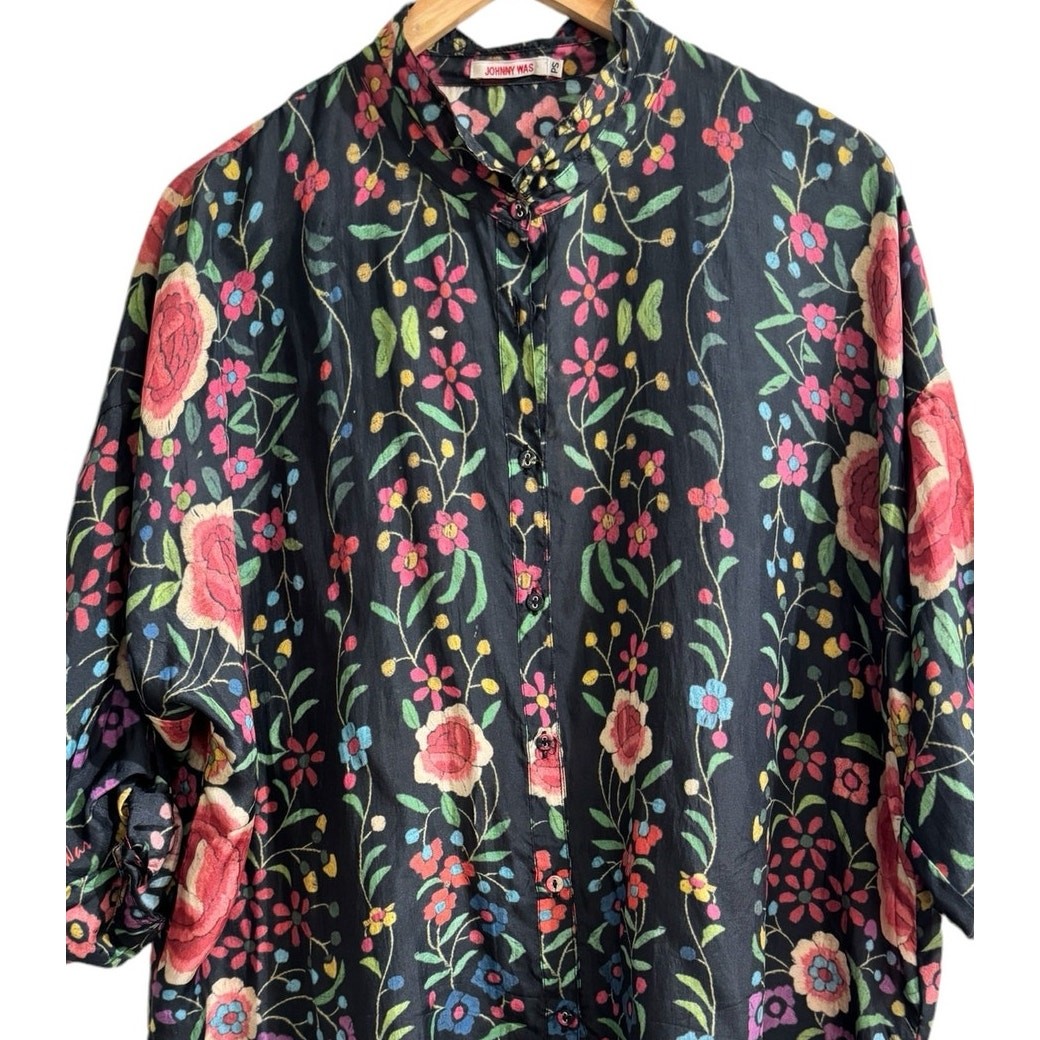 как выглядит Johnny Was Emby Silk Floral Button Up Blouse Boho Indie Lightweight Top PS фото