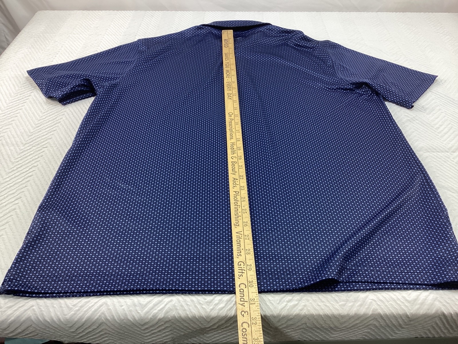 Greg Norman Polo Shirt Mens XL Blue Geometric Performance ML75 Golf