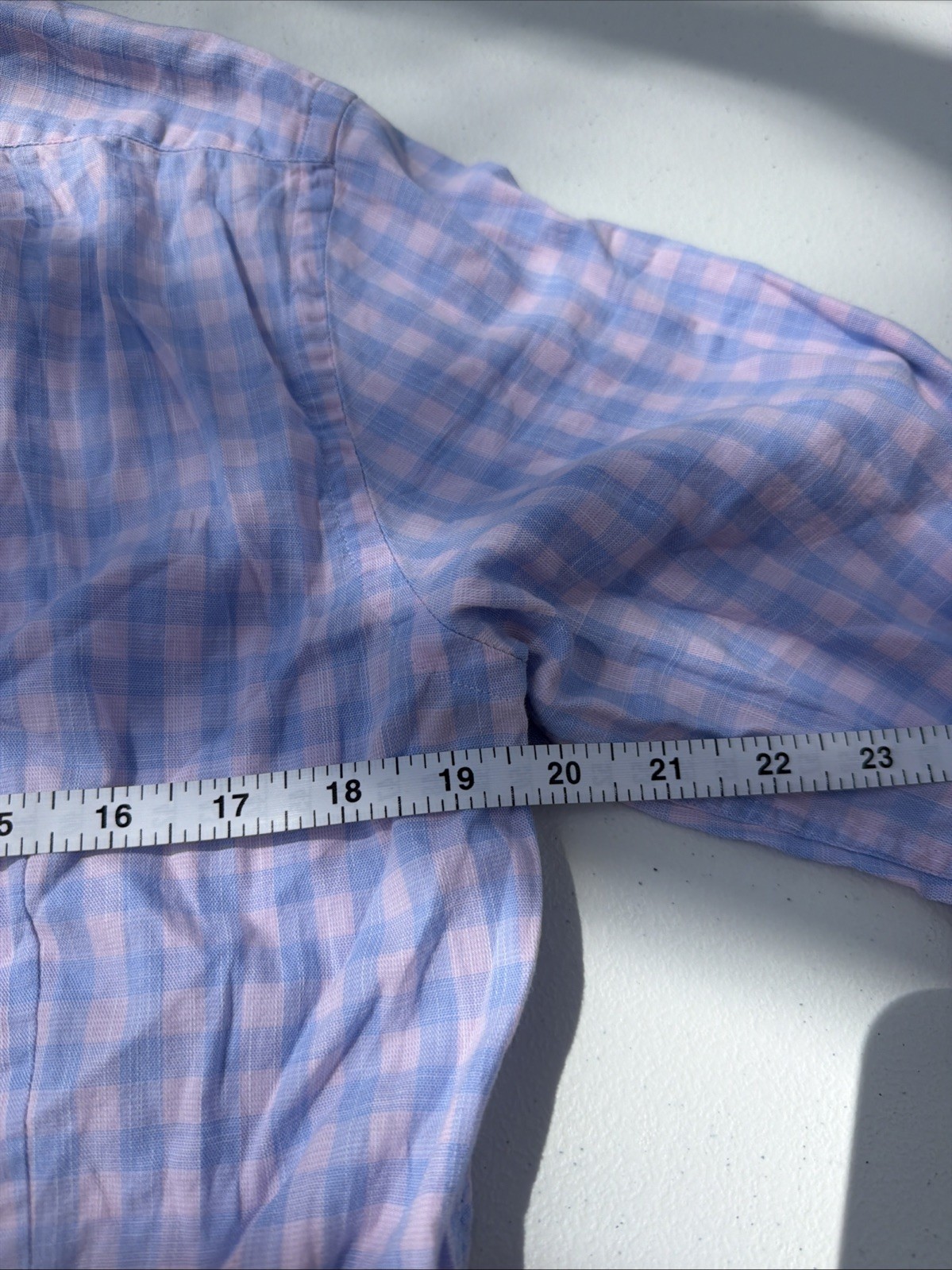Charles TYRWHITT 100 Cotton Men s Medium 15.5 33 Blue Pink Plaid Shirt