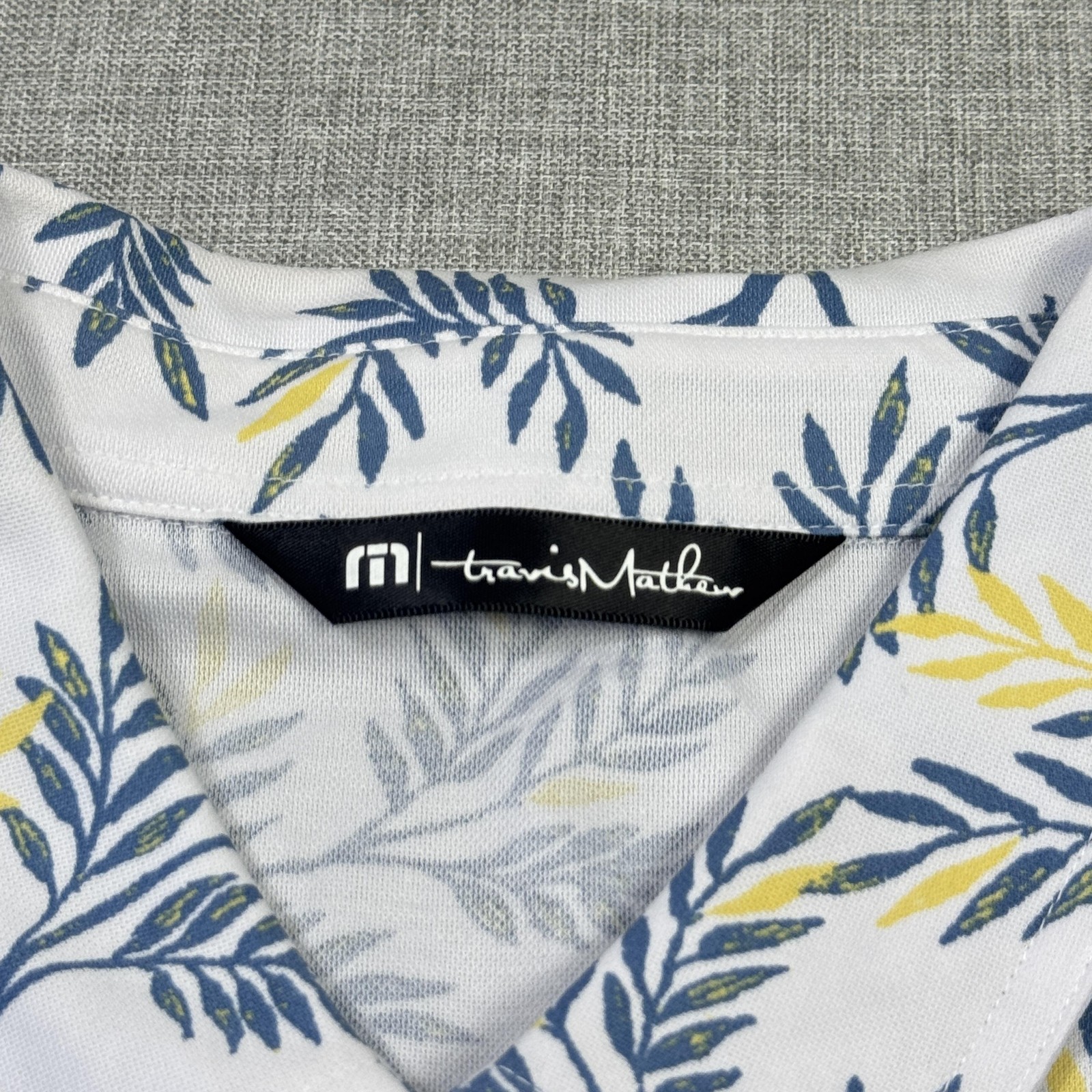 как выглядит Travis Mathew Floral Golf Polo Shirt Mens XL White Blue Short Sleeve Cotton фото