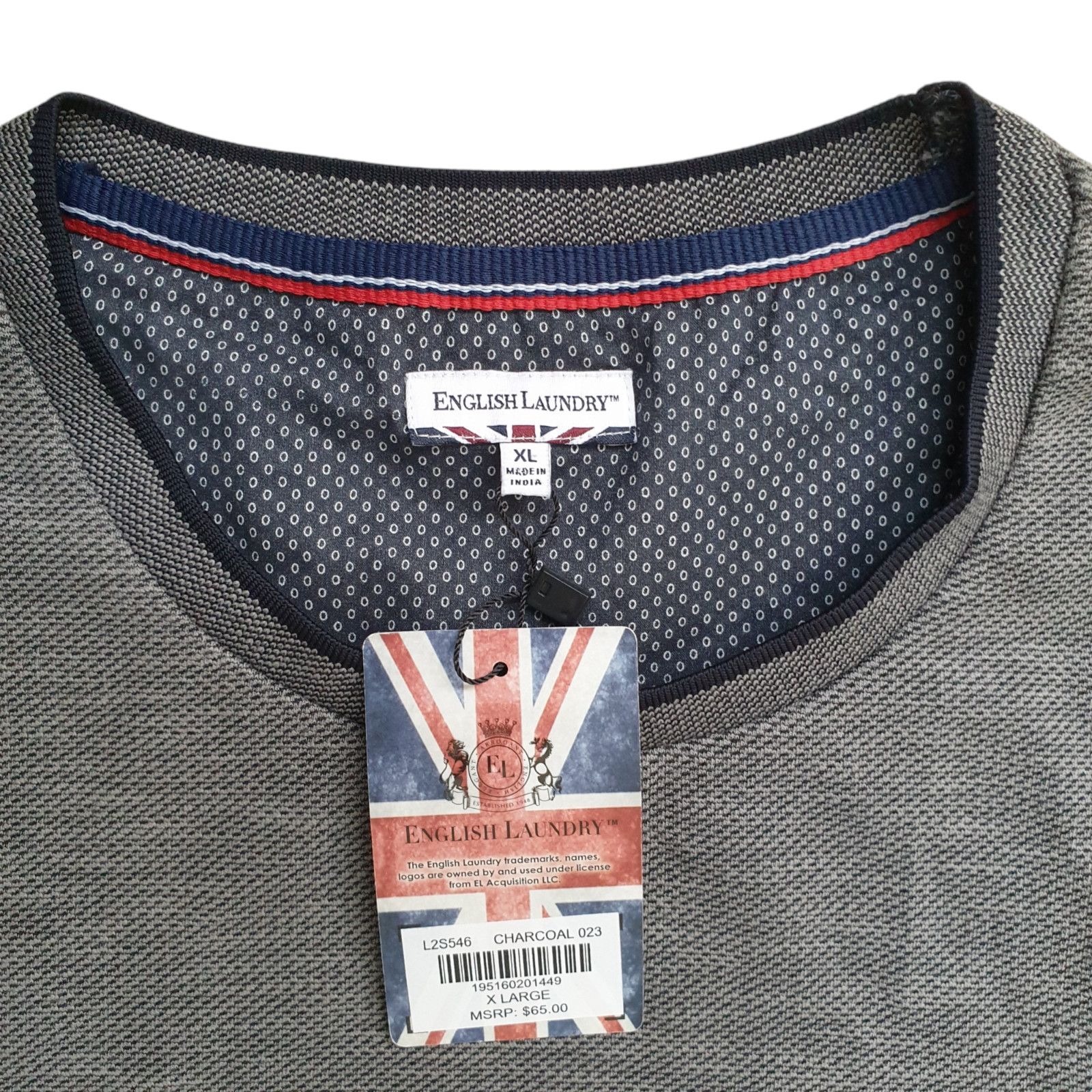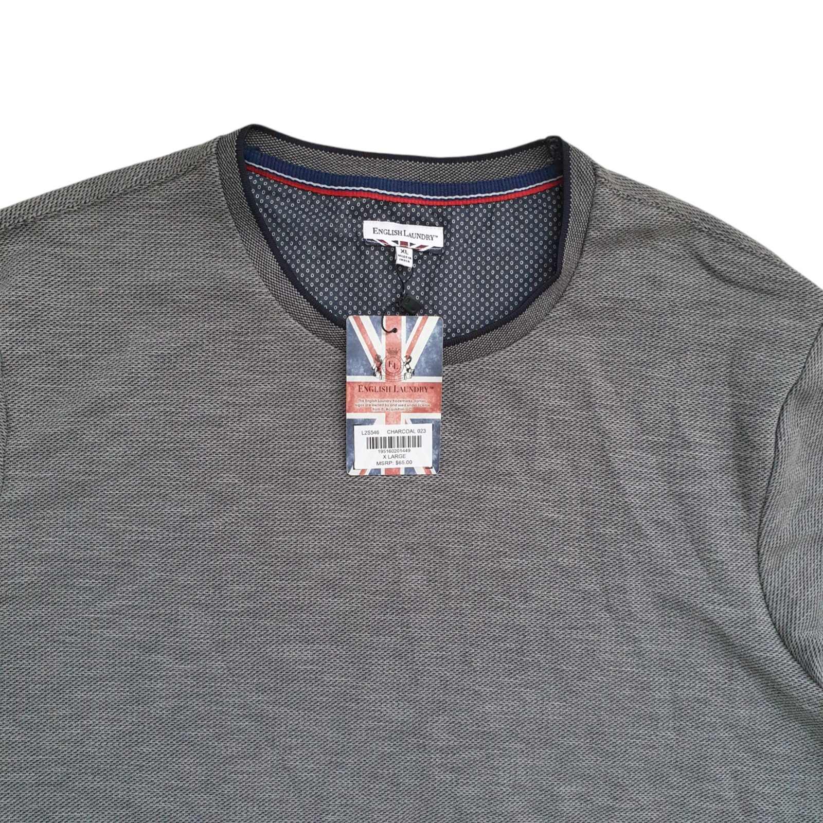 как выглядит NWT English Laundry Long Sleeve Crew Neck Pullover Shirt Gray Mens XL фото