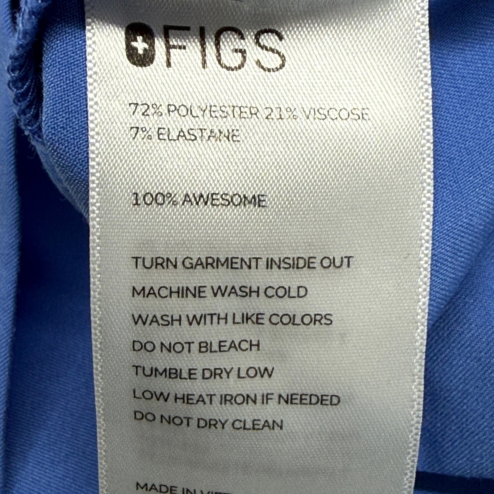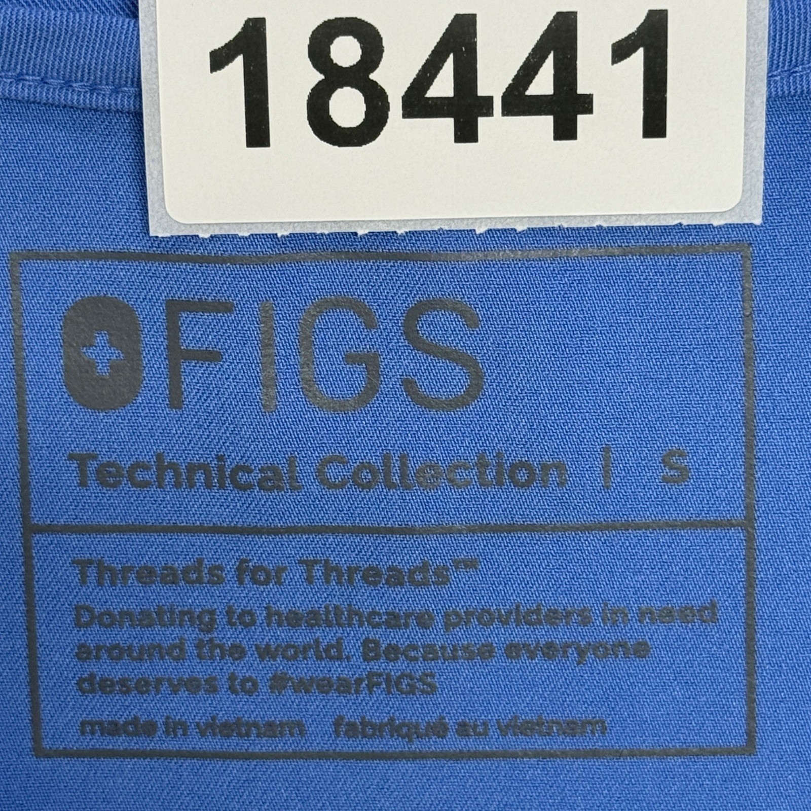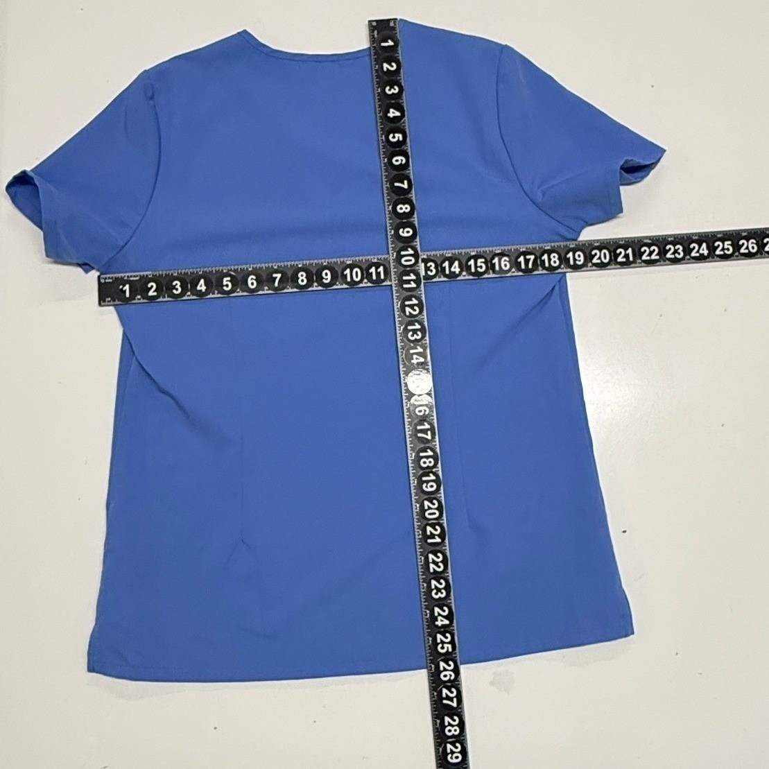 как выглядит Figs Scrub Top Women Small Blue Stretch Short Sleeve Technical Collection V Neck фото