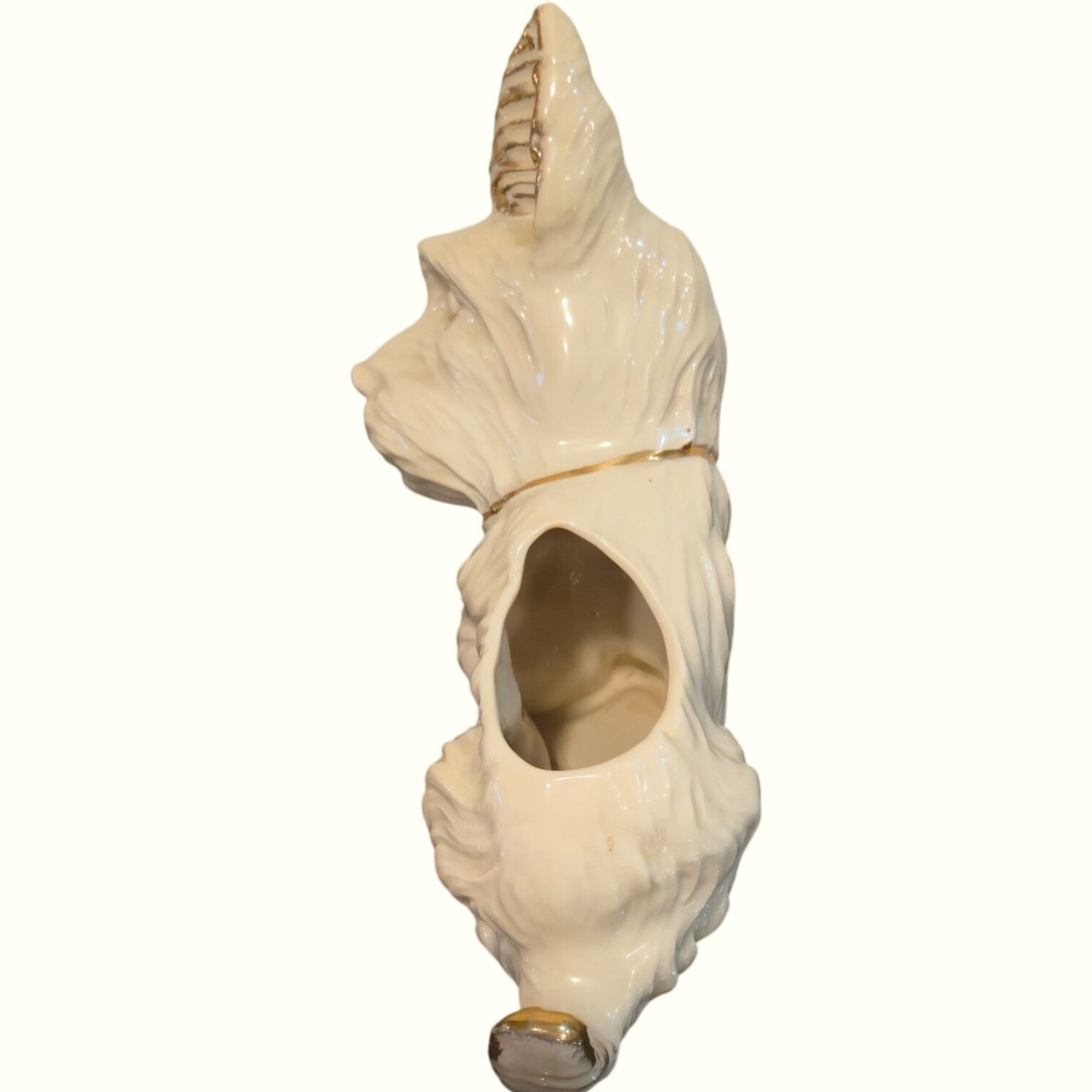 • Vintage Scottish Terrier planter Dog Scottie figural white ceramic gold trim