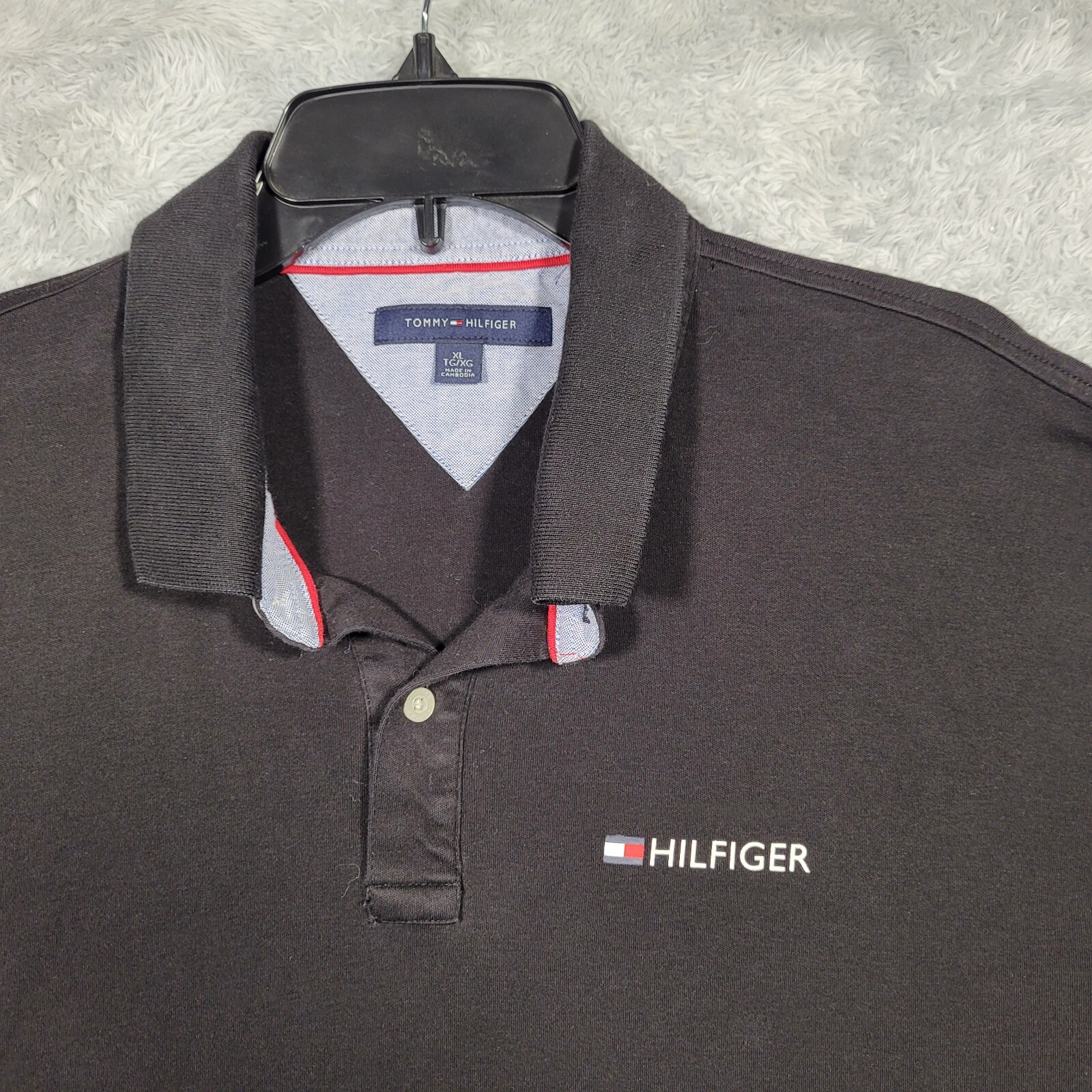 Tommy Hilfiger Polo Shirt Mens XL Black Cotton Logo Short Sleeve