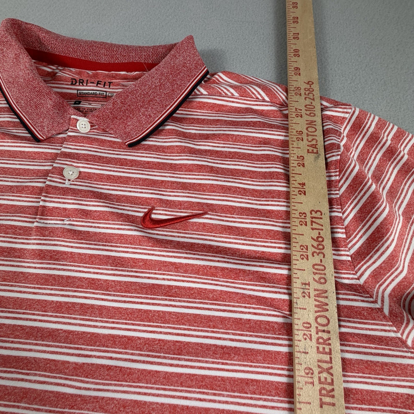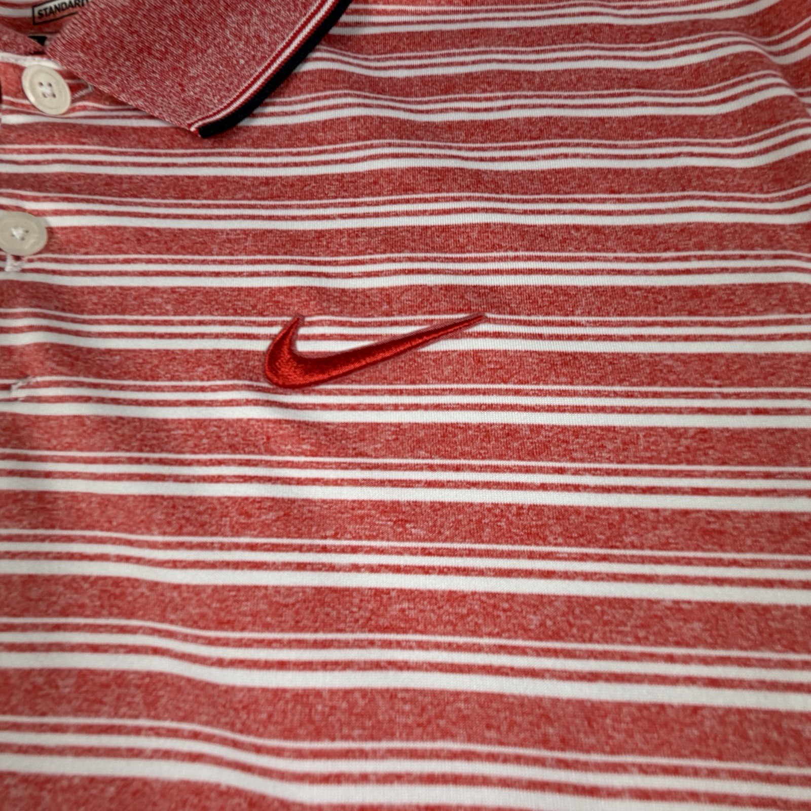 как выглядит NIKE GOLF DRI-FIT Polo Shirt Mens XL Red White Striped Standard Fit Performance фото