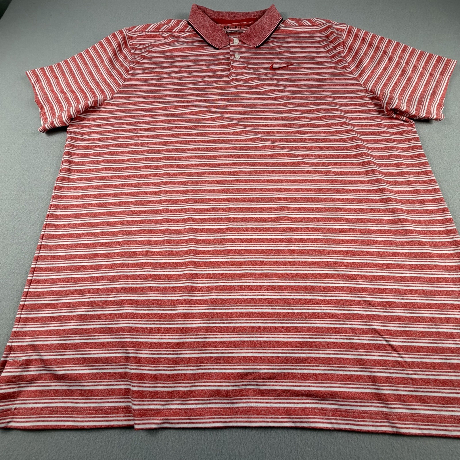 NIKE GOLF DRI-FIT Polo Shirt Mens XL Red White Striped Standard Fit Performance