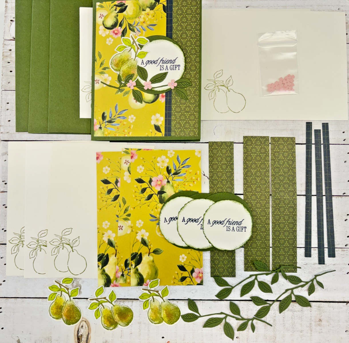 Stampin' Up Card Kit - PAINTERLY PEARS - All Inclusive Set of 4 Cards