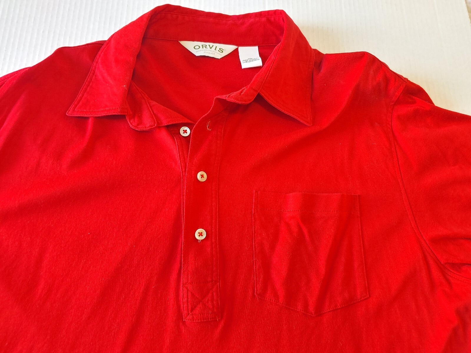 как выглядит Orvis Polo Shirt Mens XL Red Pocket Short Sleeve Collared Casual READ фото