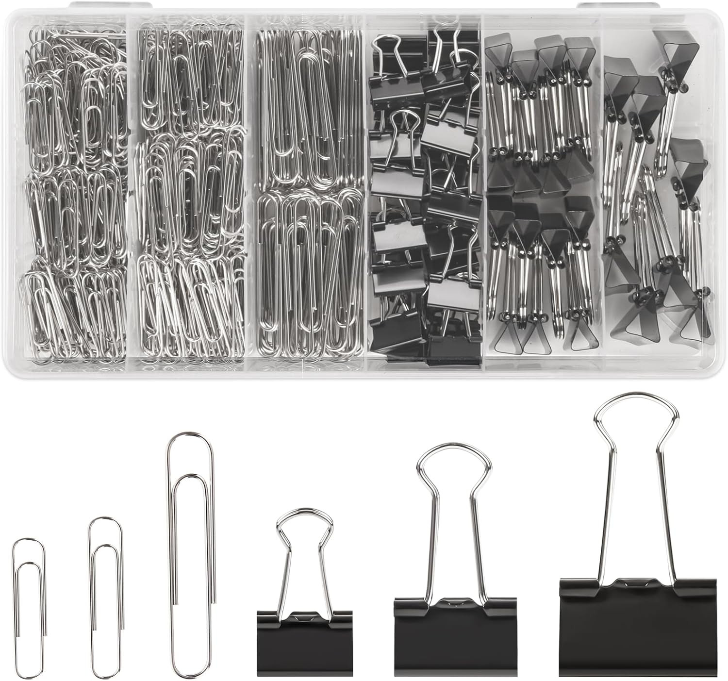 500PCS Paper Clips and Binder Clips Assorted Sizes,Silver Paper Clips Black Bi
