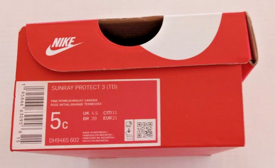 Size 5c Nike Sunray Protect 3 Sandals/Kids Pink Prime Sangria Shoes New In Box