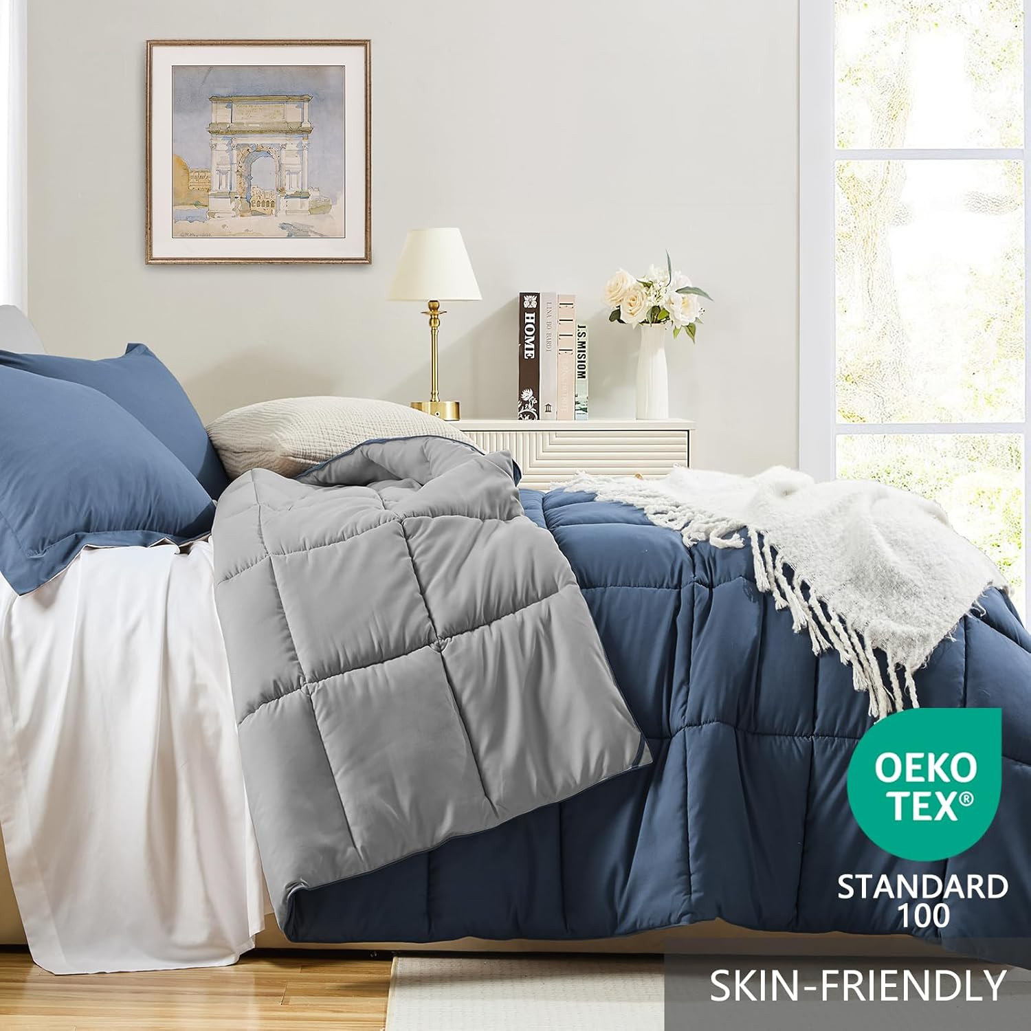Queen Comforter Set Blue, Comforters Queen Size Set Lightweight Reversible down