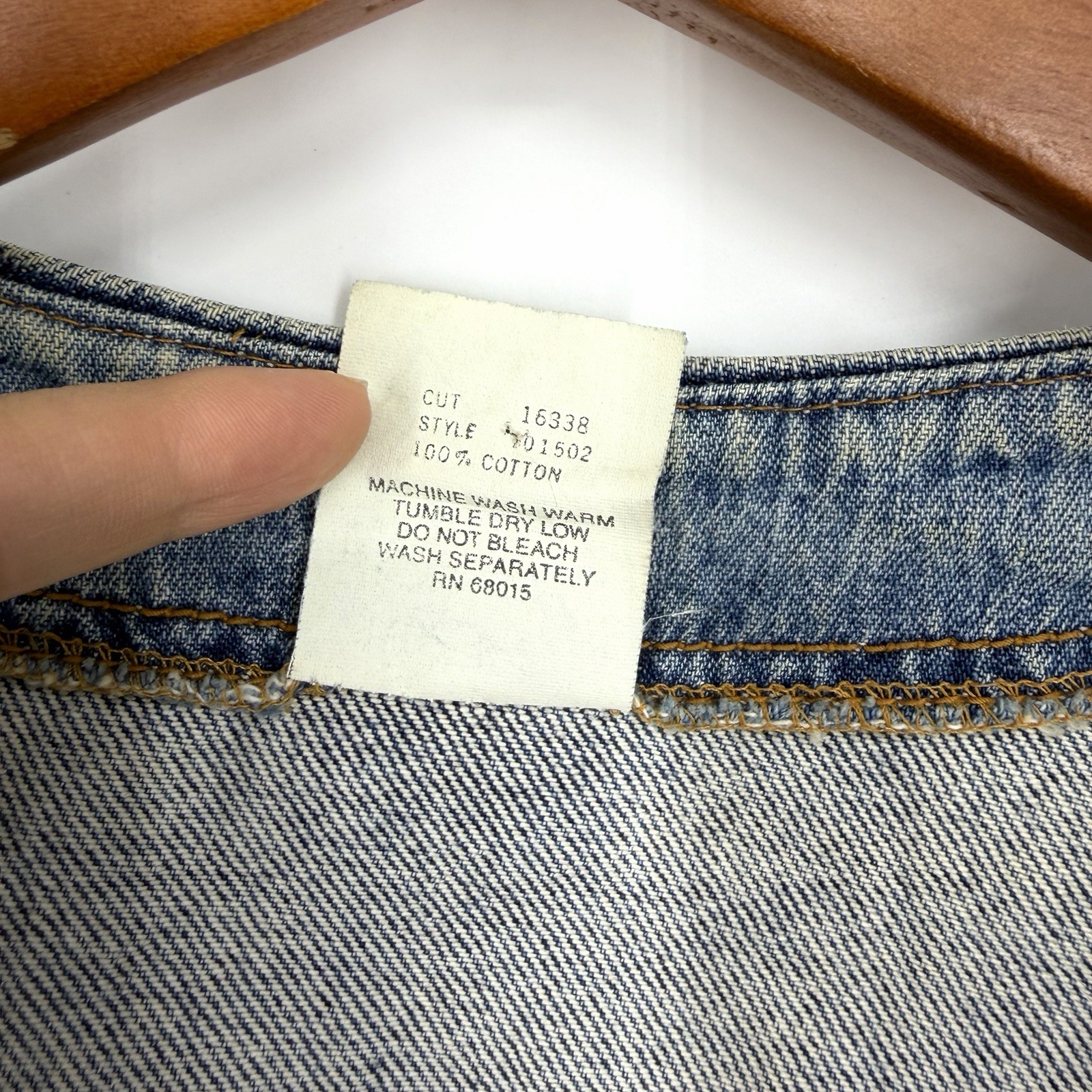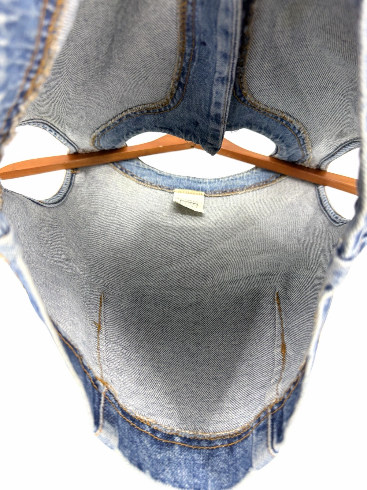 как выглядит Vtg 90s Crop Denim Vest Top XS Bongo Montesano Blue Jewel Button Rodeo Festival фото